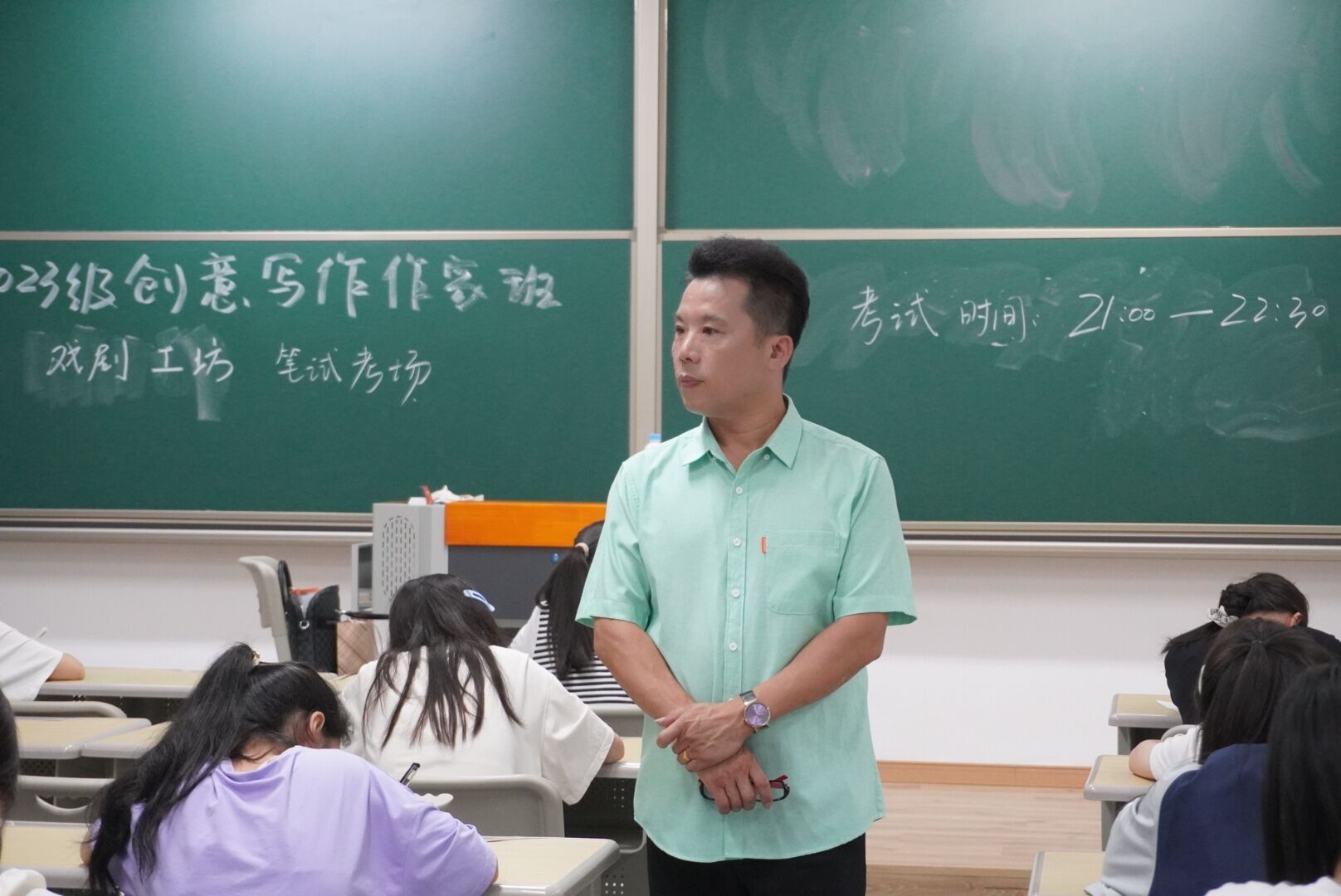 戏剧工坊杨南岳老师:13日晚作家班戏剧工坊笔试圆满结束。笔试过程中,学生助教引导有序,同学们答题相当认真。在笔试和面试后,我开始感觉到自己灵魂已嵌入戏剧工坊,在往后的教学授课过程中,也会因为这一场笔试带给我的沉思去爱护每一名学生。我和王恒绩老师有能力有信心将这20名学子带出成绩。