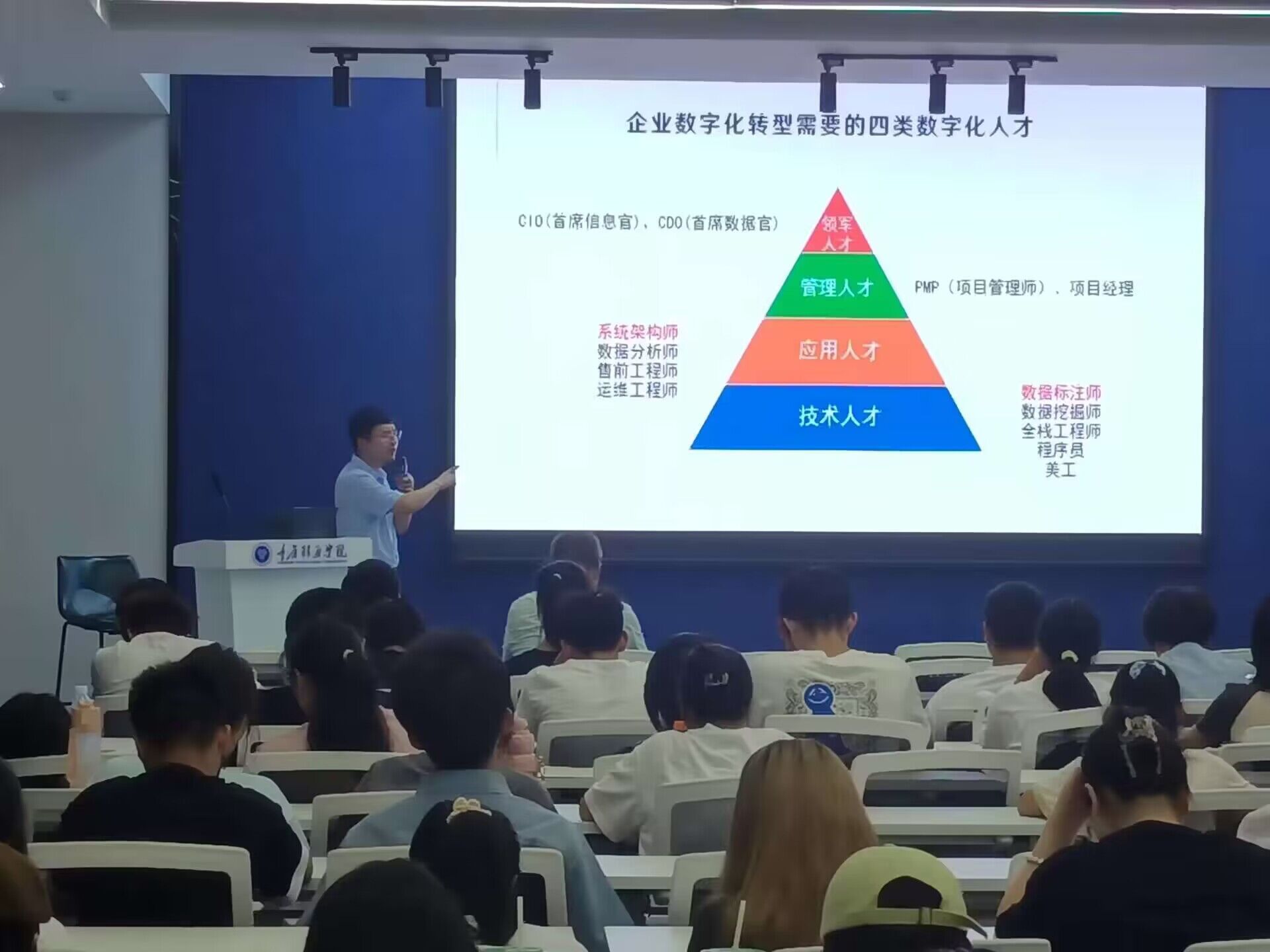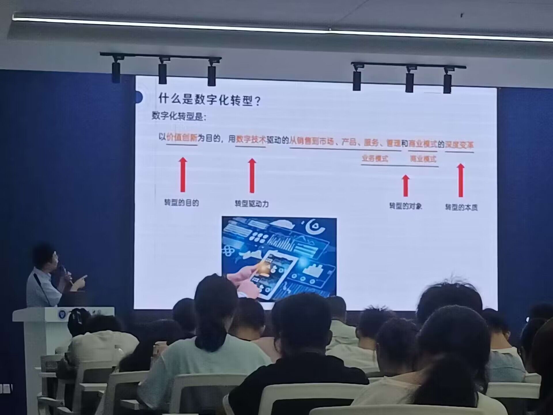 数字化转型,前进正当时。数字经济与信息管理学院邀请行业专家,于9月20日在綦河书院2号楼D区观涛·多功能报告厅,开展主题为“企业数字化转型思维与底层逻辑”的专家讲座。主讲人杨洋老师是行业专家也是我校的兼职教师。本次讲座深入探讨了数字化转型对企业的重要性,及如何应用创新思维和底层逻辑引领企业转型的实践经验,为学生激发兴趣、分享经验、提供启示、拓展思维。数信学院院长潘显兵、教研室主任陈明燕、学院各专职教师、数字经济专业的学生参加了本次讲座。