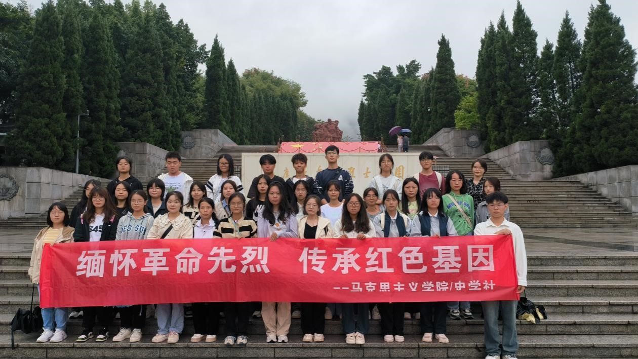 青山不语,丰碑永存。为感悟先烈精神,赓续红色文化,传承红色基因。9月22日,马克思主义学院的两位指导老师与史学社35名同学来到歌乐山烈士陵园,参加以“缅怀革命先烈·继承红色基因”为主题的祭扫烈士墓活动。