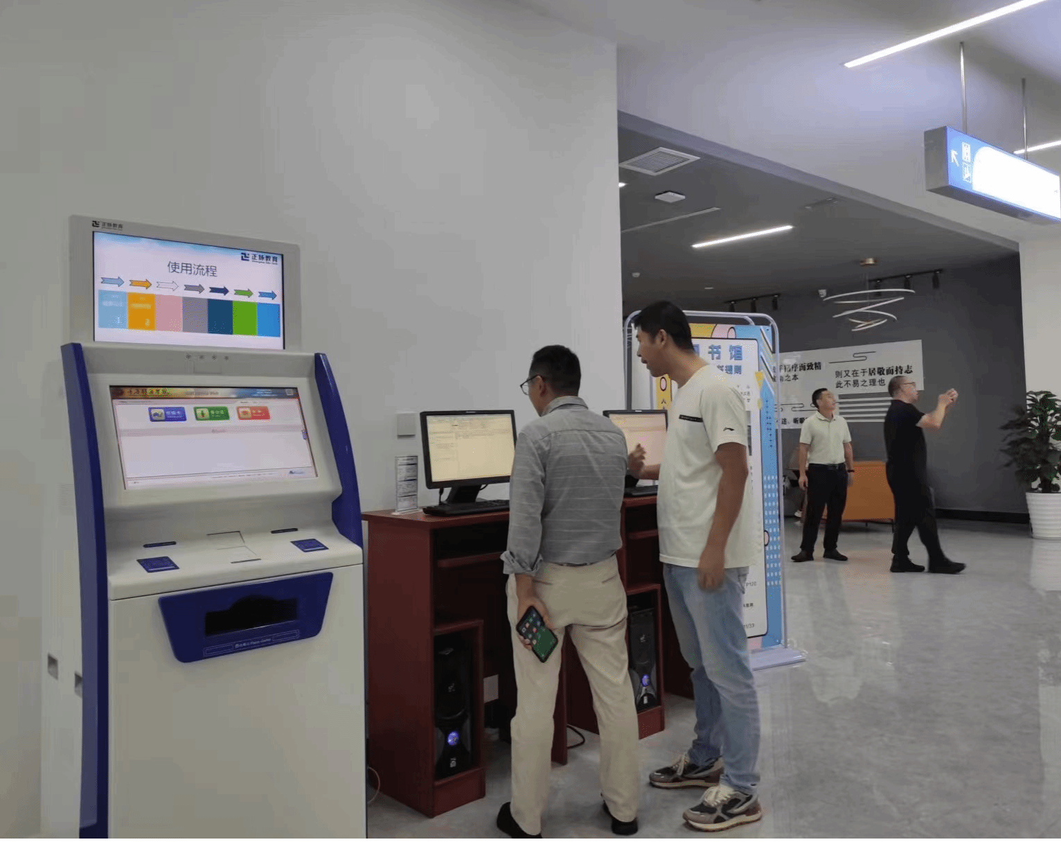 我校图书馆馆长秦代辉及馆长助理张正光带领綦江校区全体馆员接待了刘馆长一行,带领大家参观图书馆,对馆内书籍陈列流通方式、服务设施、阅读区的布局设计、自助借阅机等现代化设施以及我校图书馆的几项特色活动,如“大咖阅读主题书展”“读书打卡活动”“书库寻宝”等进行了详细地介绍。