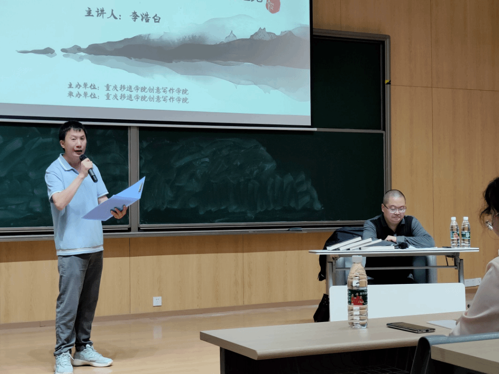 9月23日下午,綦江校区创意写作学院“作家面对面”第四期活动在玉棠书院阶梯教室进行,由著名作家李浩白带来《虚构与真实——关于小说创作的管窥之心》文学讲座,讲座迎来了创意写作学院副院长苏瓷瓷,教研室主任刘明,王恒绩老师和綦江作协的老师们,活动会场座无虚席。