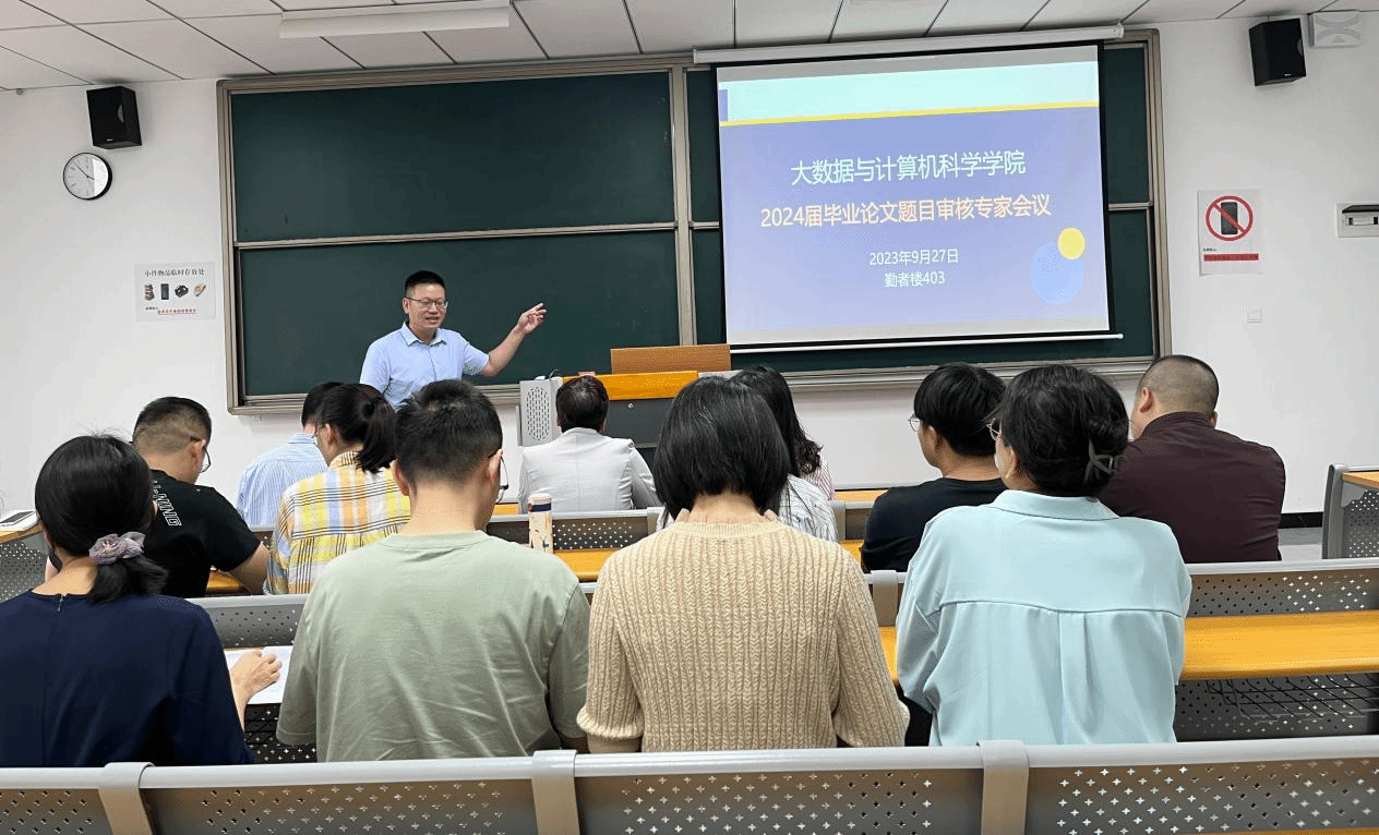为切实做好2024届本科毕业论文选题工作,9月27日下午15:00,大数据与计算机科学学院在勤者楼403召开了2024届毕业论文题目审核专家会议。本次会议由大数据学院副院长吕云山主持,大数据学院院长闫会峰、计算机科学学院副院长向碧群、各教研室主任及学院论文工作组全体教师参会。