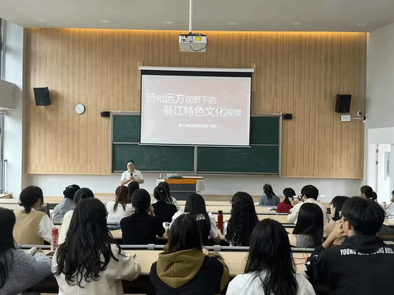 此次讲座没有华丽的表演,没有绚烂的铺张,但有周馆长的精彩讲授和真情流露。周馆长从历史的角度出发,探讨了綦江在巴蜀文明中的重要地位以及其对巴蜀文化的贡献。他指出,綦江地区的历史和文化相互交融、相互影响,形成了独特的文化氛围和特色,闪烁着巴蜀文化耀眼的光芒。周馆长还重点介绍了綦江的僚人文化、红色文化和抗战文化,同时,聚焦綦江所孕育的文人墨客和诗歌艺术,通过解读綦江地区的诗歌作品,剖析了其中蕴含的独特意境和情感表达,引发在场师生对艺术与自然的思考。