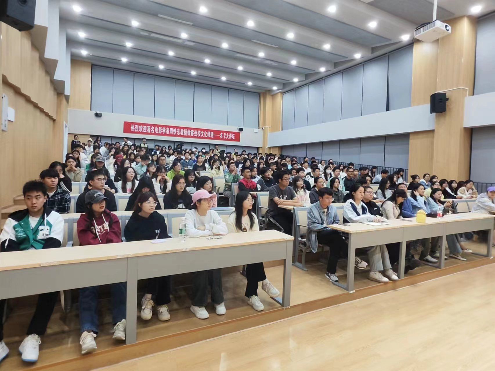 讲座伊始,周铁东教授引用严复先生的《论世变之亟》以提出价值偏差与文化势差,同时以习近平总书记的《科学与爱国——严复思想新探》来承认严复的看法。并且提出“文化鱼刺、文化变译与面对全球市场竞争的中国电影创作的概念”,以《霍元甲》为例来进行讲解,让同学们了解面对全球市场竞争时中国电影为赢取西方市场所做出的文化变译,更深刻地感受中西方电影文化差异,并且指出这就是电影作为文化传播工具而特有的魅力。