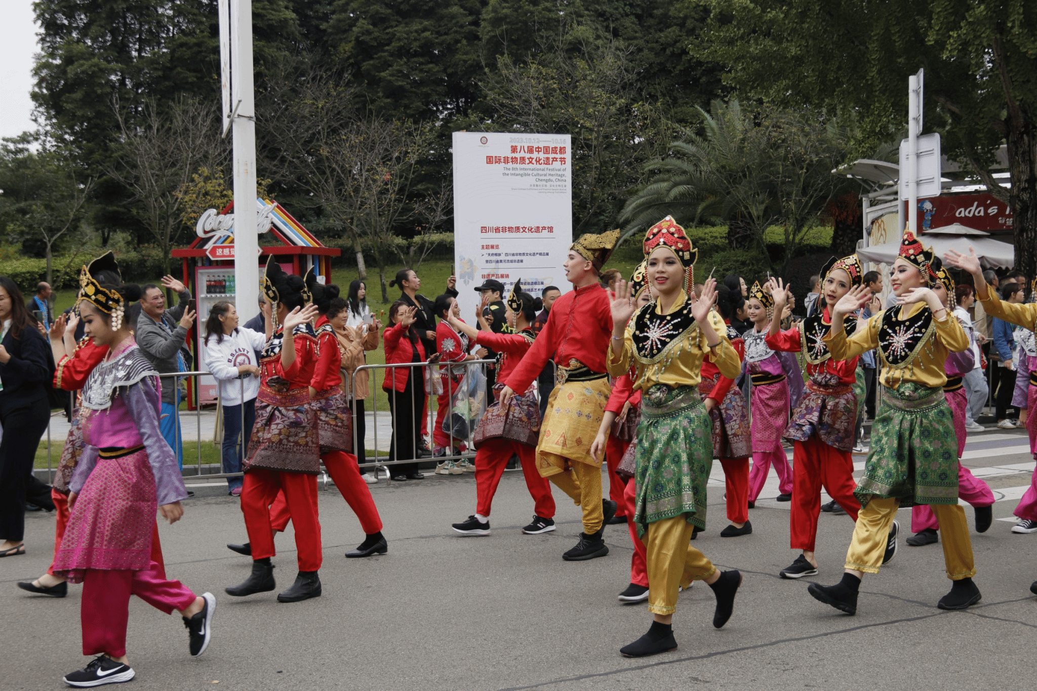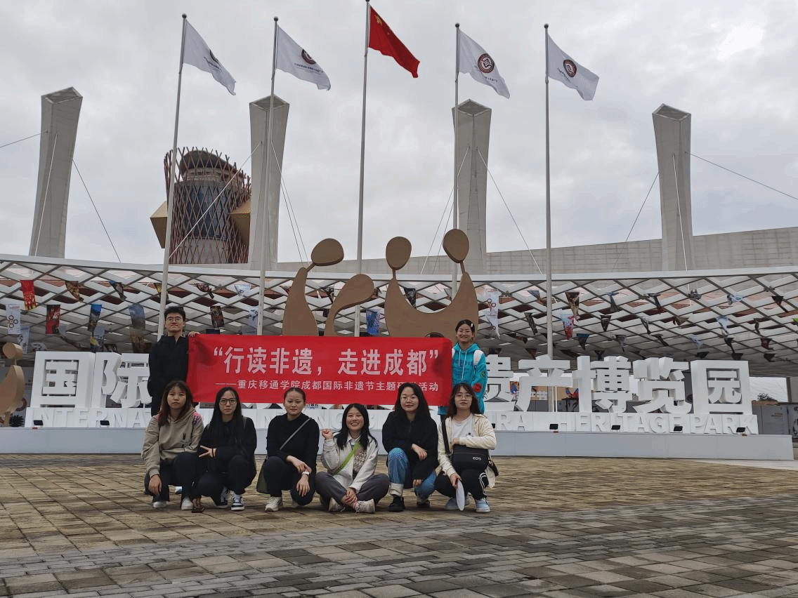 10月12日,在晨光熹微中,重庆移通学院非遗研学小组在刘敏、李凤勤、彭浩三位老师的带领下开启了成都国际非物质文化遗产博览园第一天的研学之旅。此次研学活动由地域文化与城市发展研究院綦江与合川校区联合开展,在为期4天的时间里,三位老师将带领同学们观看、学习、体验、交流来自国内和世界47个国家的900多个非物质文化遗产项目。