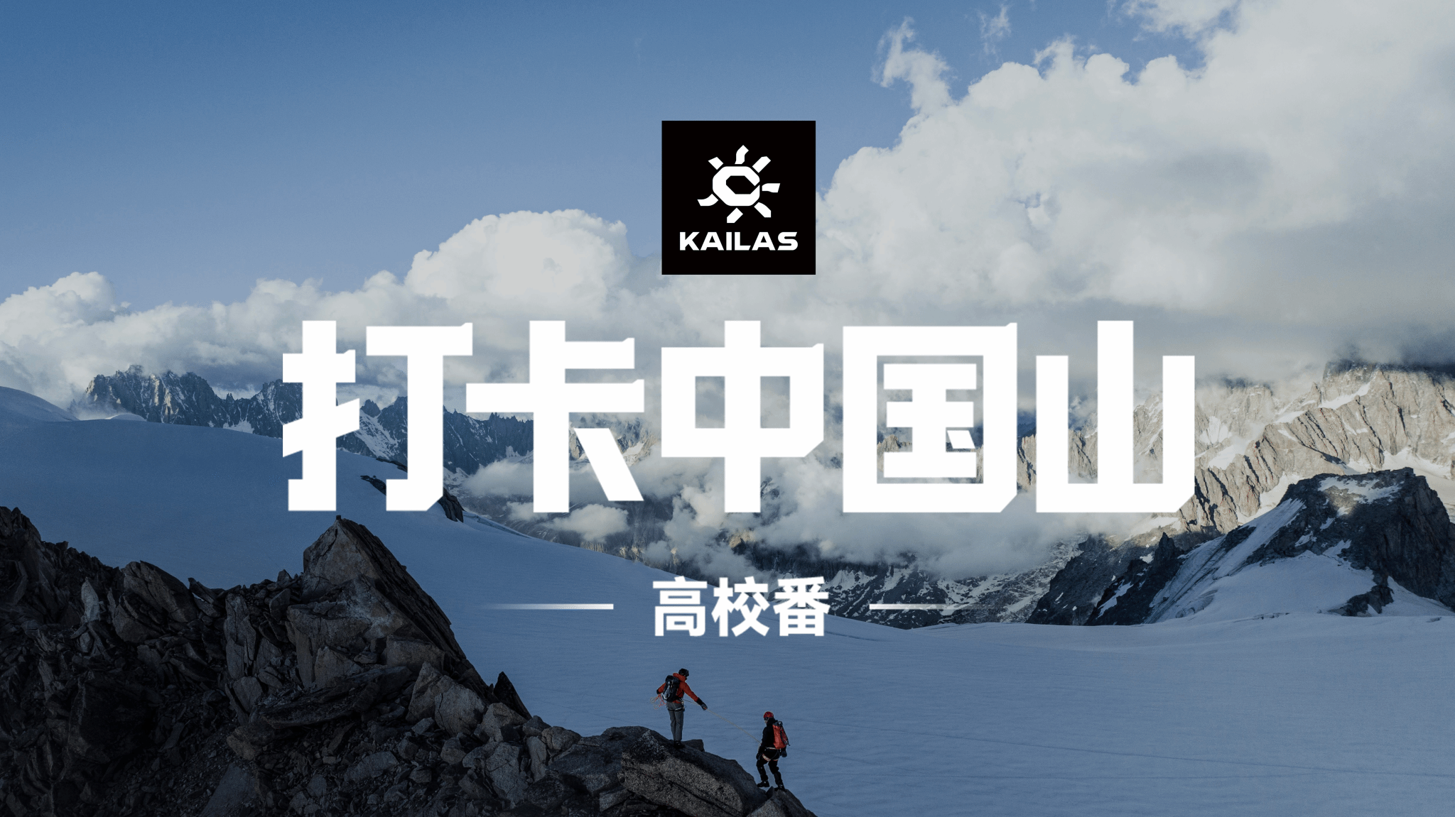 “KAILAS打卡中国山”高校番是由广州领攀户外运动中心发起、KAILAS品牌提供专业支持,在国内高校招募选拔组织的,专门针对国内高校大学生组织的探索中国山峰的项目活动。旨在鼓励高校大学生通过参与活动,敢于热爱,积极探索,追求美好生活。通过将积极向上的精神融入当下及未来的学习生活,并且把热爱分享给身边更多的小伙伴,带动更多的朋友一起走进户外,体验户外,享受户外。