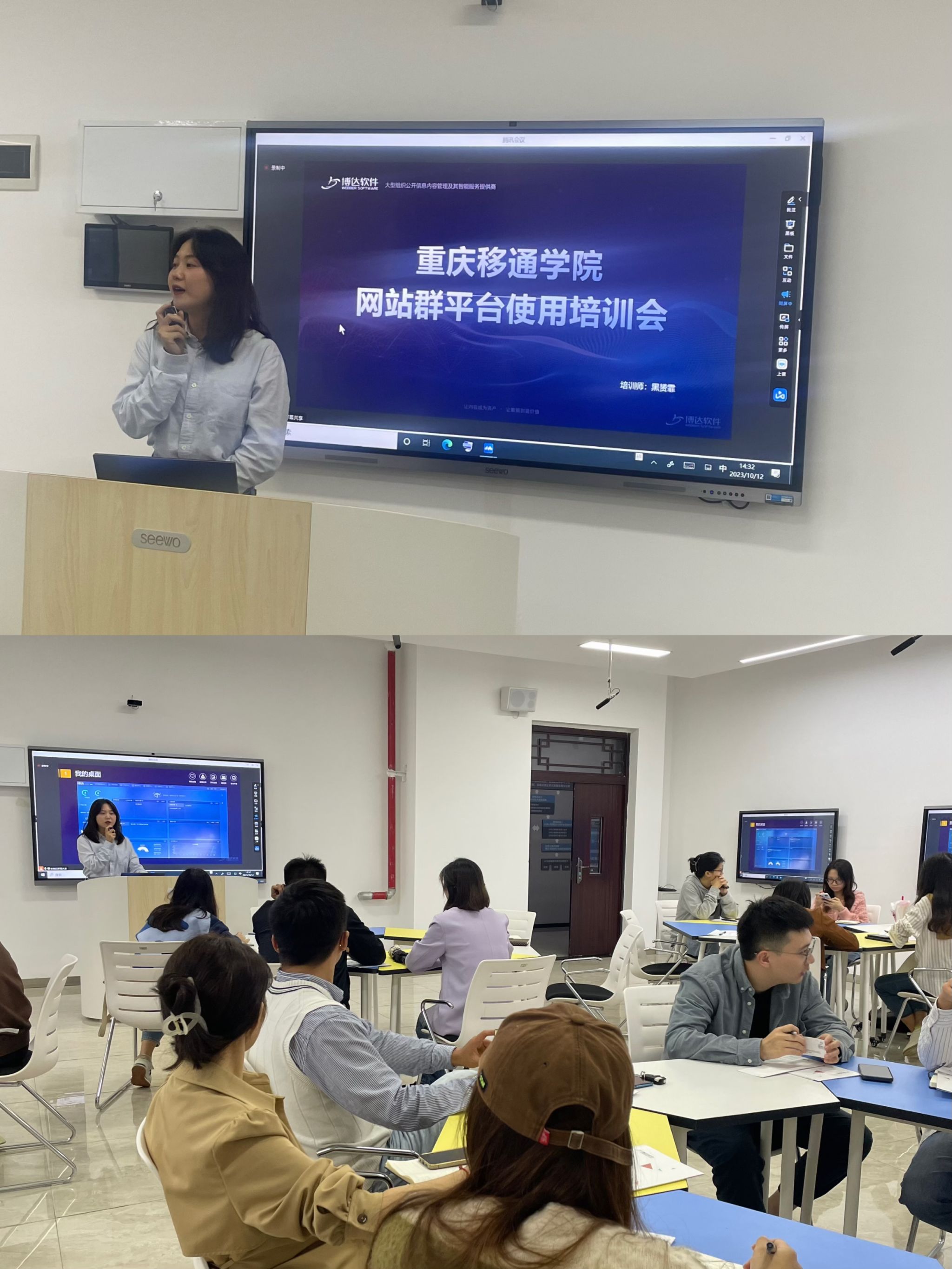 为进一步加强学校网站群系统管理及信息的高效发布,提升全校信息化管理人员的信息化应用水平,10月12日由网络与信息管理中心主办的网站管理运维技能培训会,在綦江校区实训中心105智慧教室举办。培训会由站群厂商技术人员黑老师提供技术指导和辅导讲解,宣传新闻中心、各二级单位网站管理员及网信中心部分老师参加,共计30余人参加此次培训会。