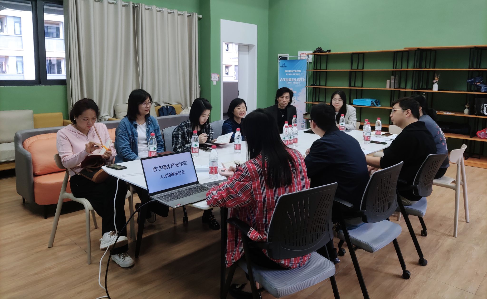 为了进一步完善数字媒体产业学院人才培养、课程体系,提升教学质量和水平,10月10日下午16:00,重庆移通学院、綦江融媒体中心、重庆头角文化传媒有限公司共同探讨人才培养及未来合作发展研讨会在綦江校区横山书院HS222召开。本次会议由范保珠院长主持,参会人员有数字媒体产业学院全体教师、綦江融媒体中心马主任一行四人、头角文化传媒黄总监一行。
