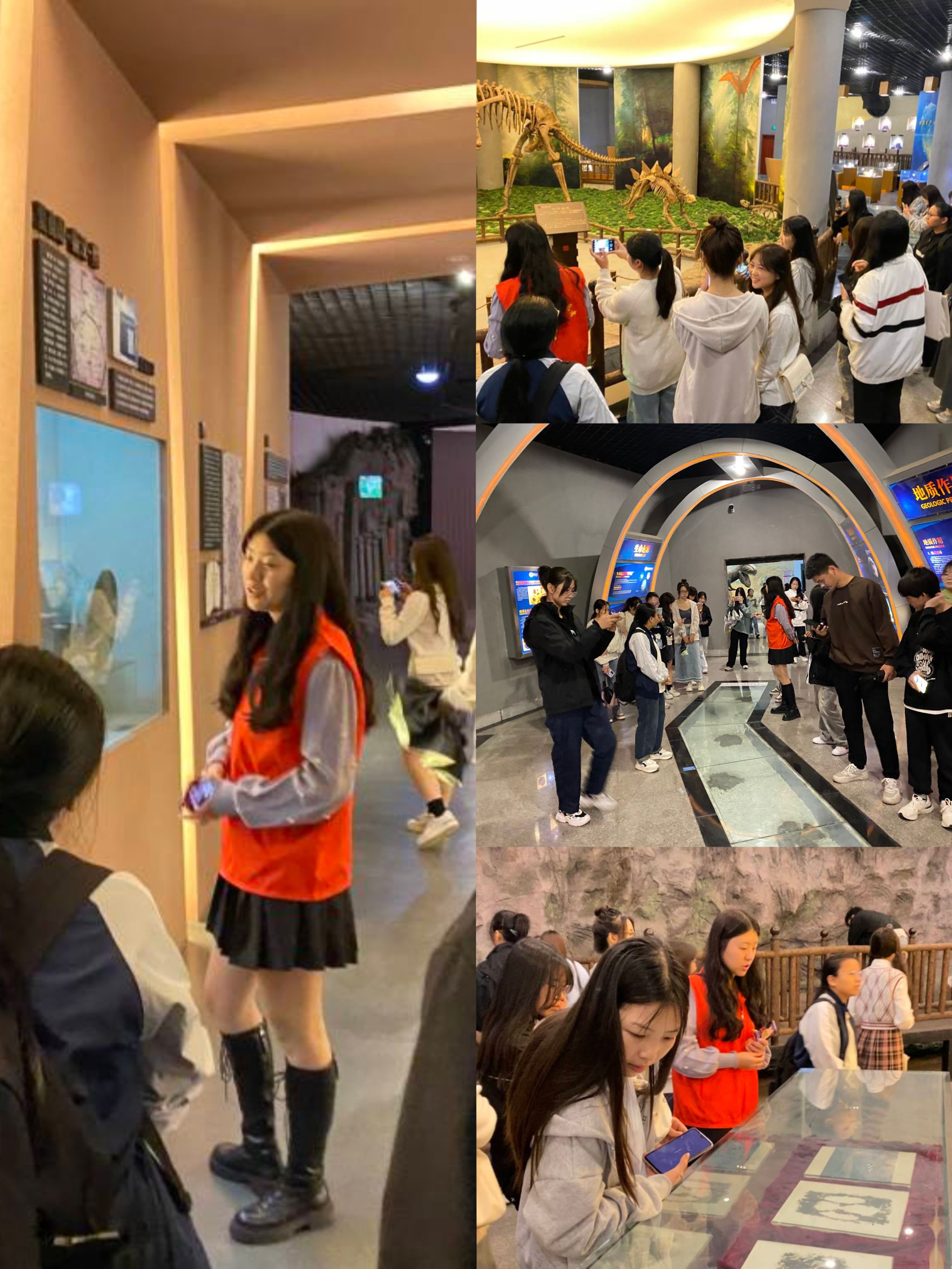 綦江博物馆位于重庆市綦江区古南街道农场村三社,其基本陈列由序厅、地质厅、历史文化厅、石刻厅等展厅组成,是一所综合性的博物馆。此次活动同学们重点参观了地质厅和历史文化厅。地质厅是重庆市第五处国家级地质公园,里面包含大量木化石和恐龙化石,同学们进入大厅就被映入眼帘的恐龙足迹所吸引,通过对木化石、恐龙化石以及各种动植物化石的观察,同学们都感叹大自然的神奇。