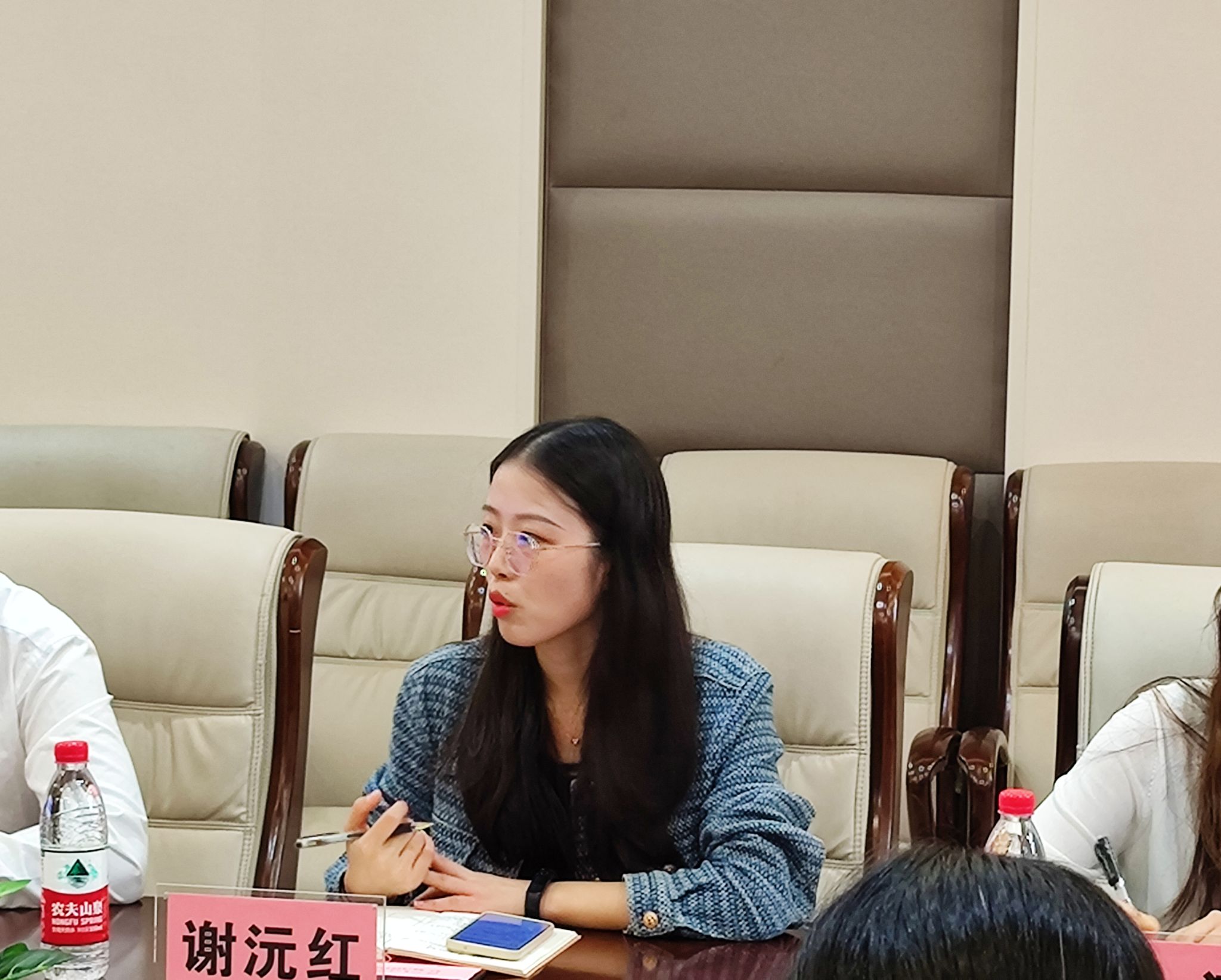 会议的第一个阶段由计算机学院进行相关工作介绍。计算机学院学工办主任谢沅红首先对学院学生工作情况进行了相关介绍,包括学院基本情况、安全稳定工作、辅导员队伍建设以及学生就业创业工作等方面。