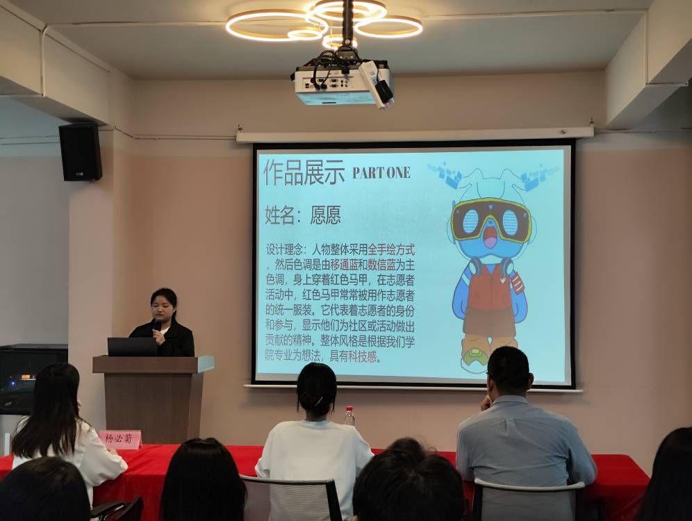 五号选手范例同学的作品名称为:信信。以信息传递和志愿服务为灵感,用温馨的蓝色作为主色调,圆形的头部代表着数字经济的核心—数据与信息,整个作品充满生机与活力,象征着青年志愿者的热情与无私奉献精神。六号选手晏维村同学的作品名称为:未来志愿兔。从数信学院教育理念出发,作品阐述了未来、科技、创新、信息等数字化时代的关键词。学院口号:“志”之所向,“愿”之所在,让青春之花绚丽绽放。
