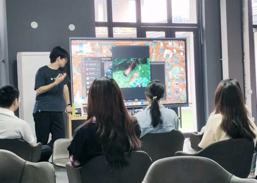 活动开始,王琎老师为同学们讲解了新媒体艺术的背景知识,介绍了风格不一的新媒体艺术大师以及他们的名作,并且向同学们传授了许多自己独到的新媒体艺术见闻。让同学们初步体会到新媒体艺术的魅力,为同学们打开了新媒体世界的大门。