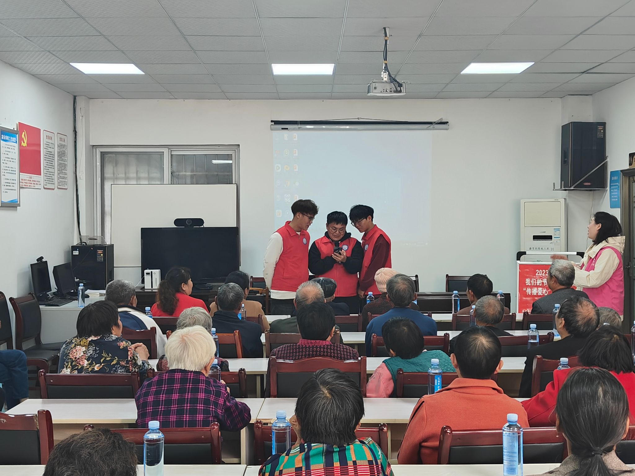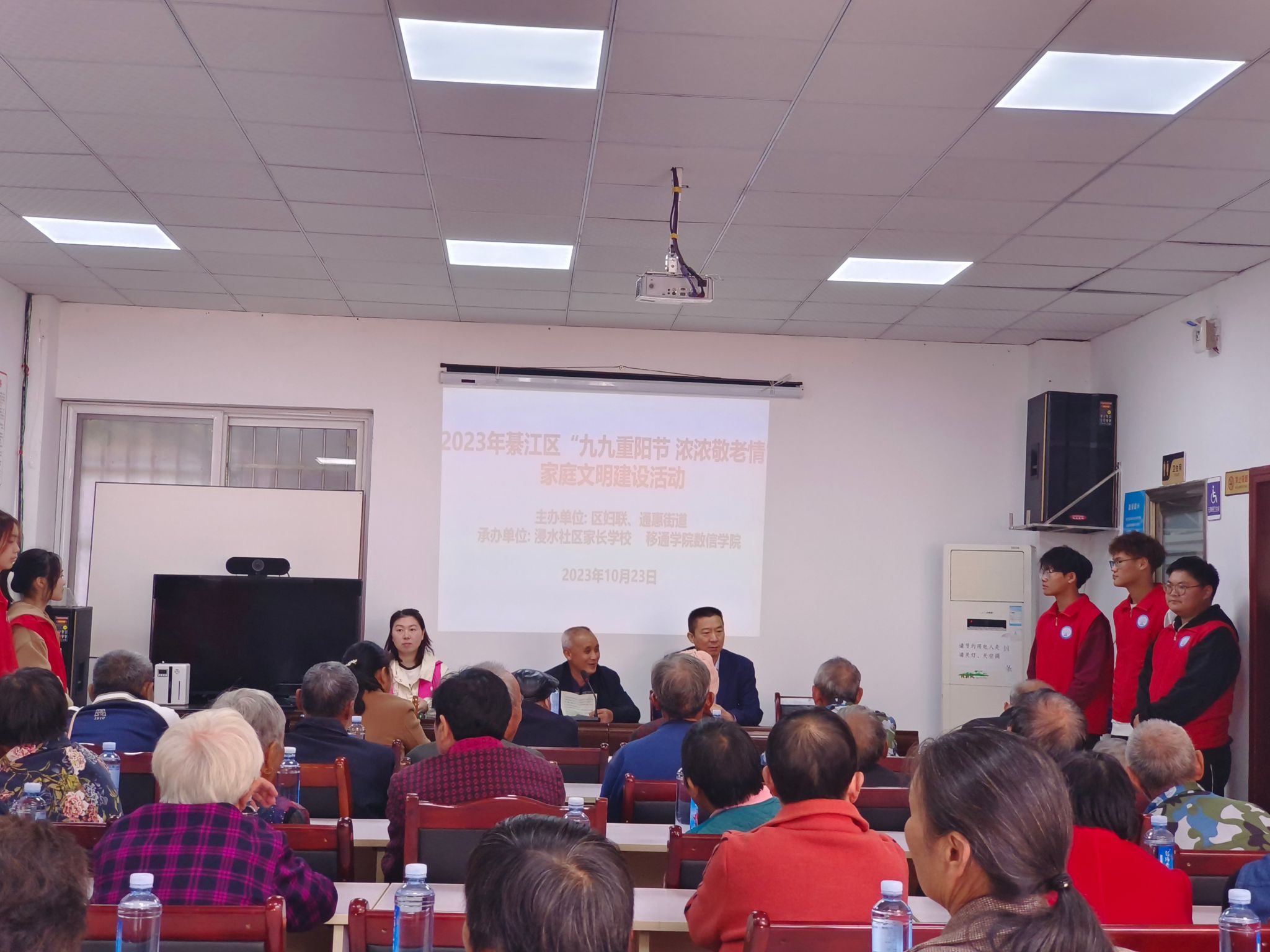 活动伊始,志愿者们引导老人们汇聚在会议室内分别入座。首先,社区的工作人员表示,要感谢老人们对社区工作的全力支持和积极参与,并询问老人生活及身体健康情况,叮嘱老人要注意饮食卫生,爱护身体,希望老年朋友们都能有一个老有所乐的晚年生活。随后,社区的相应领导为老人们讲述如何更好的去处理家庭和睦关系,为老人们普及生活上的一些重要知识。在浸水社区领导及工作人员的字字句语中,流露出对老人的关爱,表示要把关爱老人,关心老人作为一项长期工作,矢志不渝为老年人提供更好的生活服务。