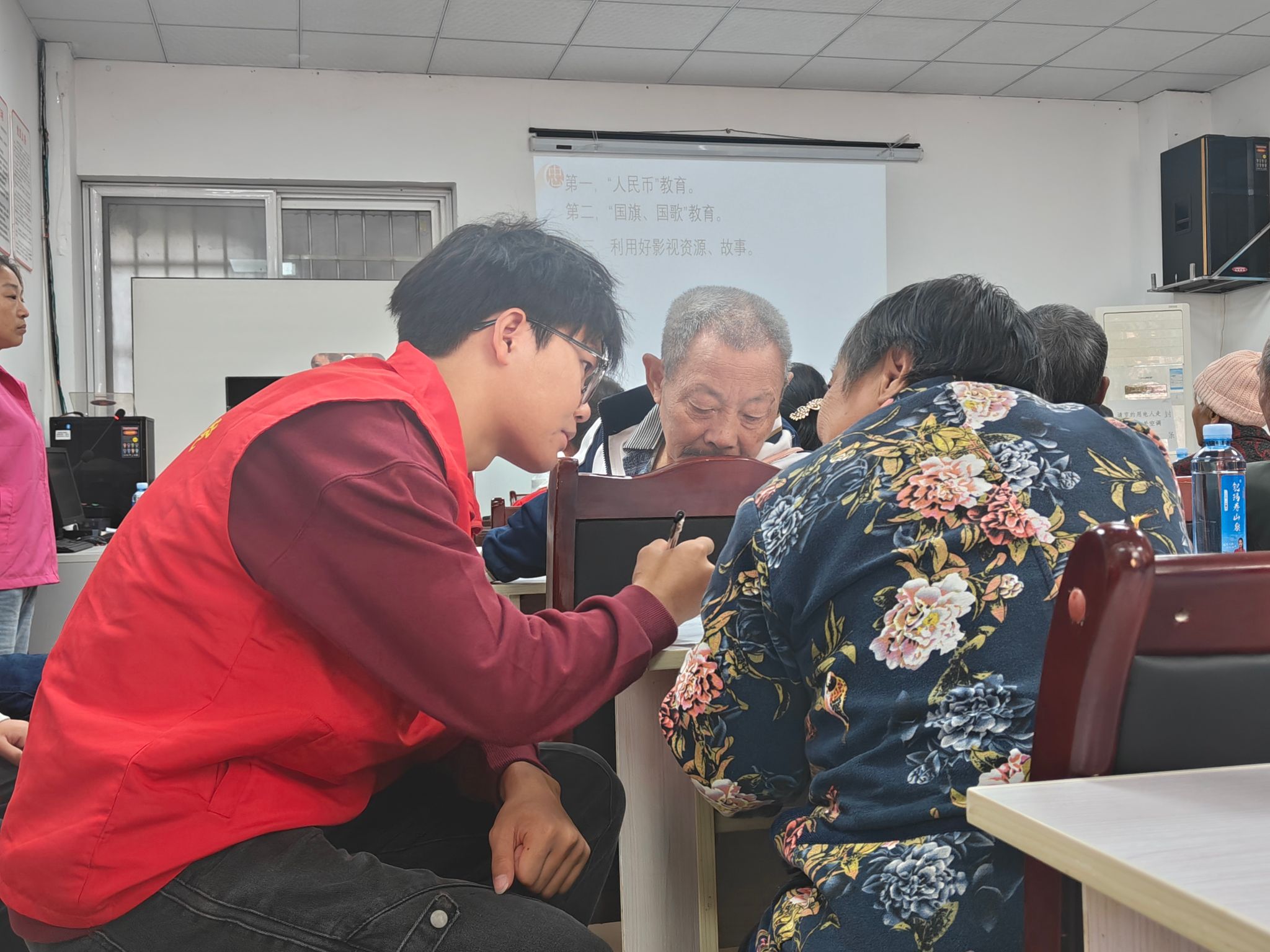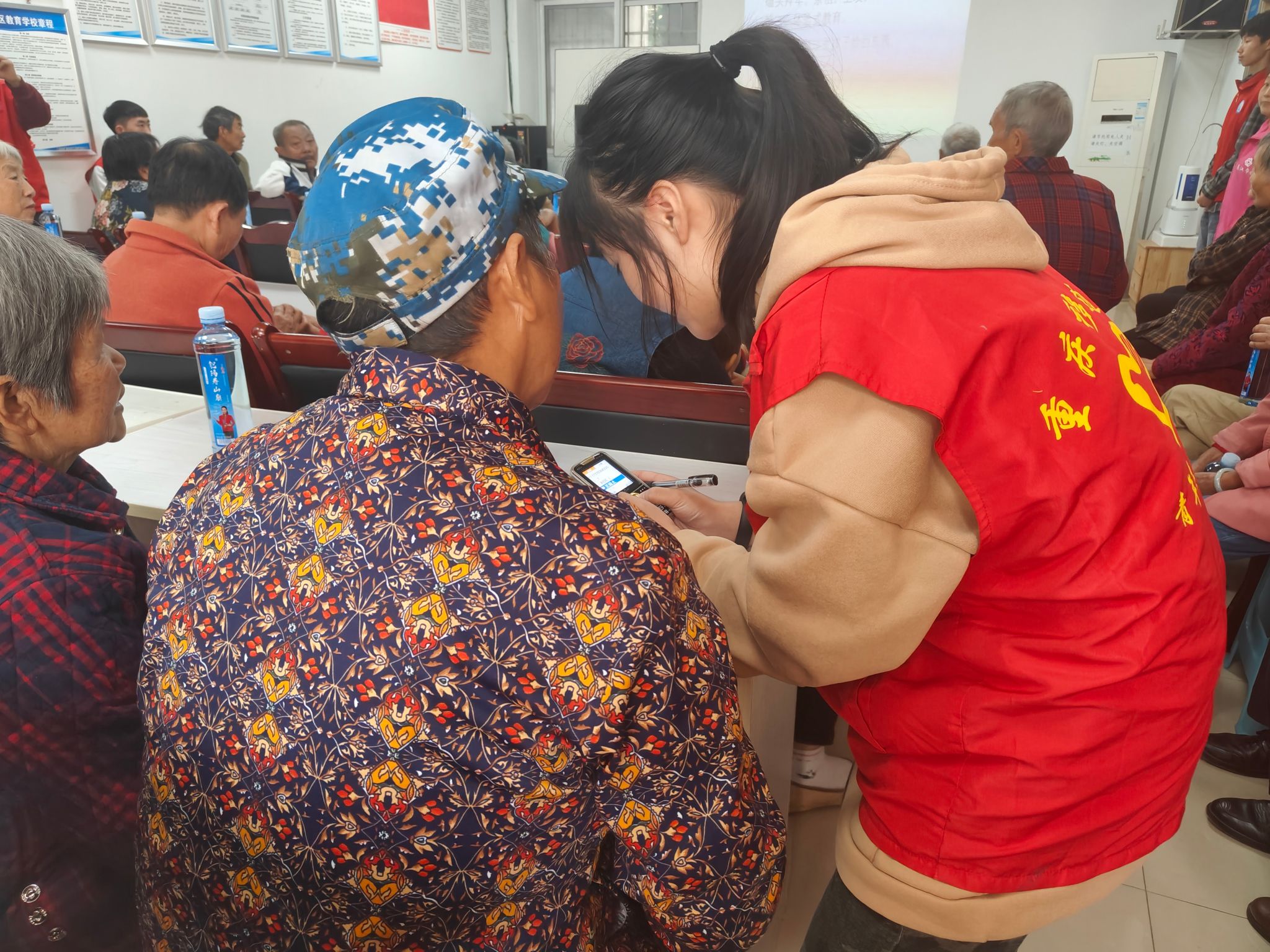上午7时许,志愿者们来到了浸水社区工作处,在社区书记以及工作人员的指导下做好了今天的活动准备。9时左右,浸水社区的老人们陆续的来到现场,此时志愿者们已经准备就绪,在迎接好每一位到场的老人的同时并递上矿泉水。现场的气氛格外热闹喜庆,老人们的脸上洋溢着喜悦。