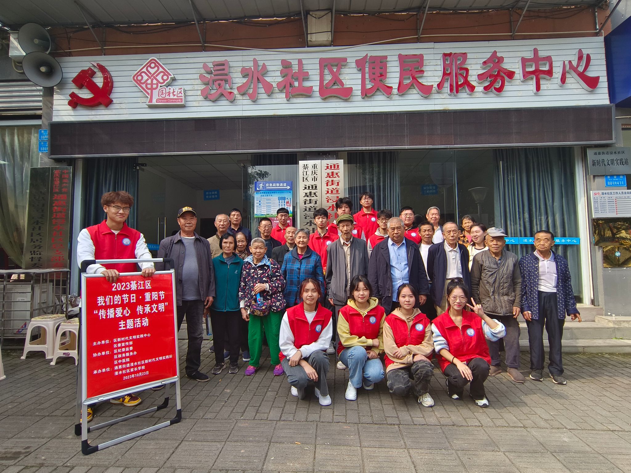 金风飘菊蕊,玉露泫萸枝。今又重阳,为弘扬中华民族敬老爱老的传统美德,营造“尊老为德,敬老为善”的良好社会风尚,积极形成全社会关注老年人的良好氛围。10月23日上午,数字经济与信息管理学院青年志愿者协会在浸水社区联合区妇联、通惠街道、浸水社区家长学校开展了“情暖花开,爱在重阳”重阳节敬老爱老主题活动,我院共13名志愿者参加此次活动。