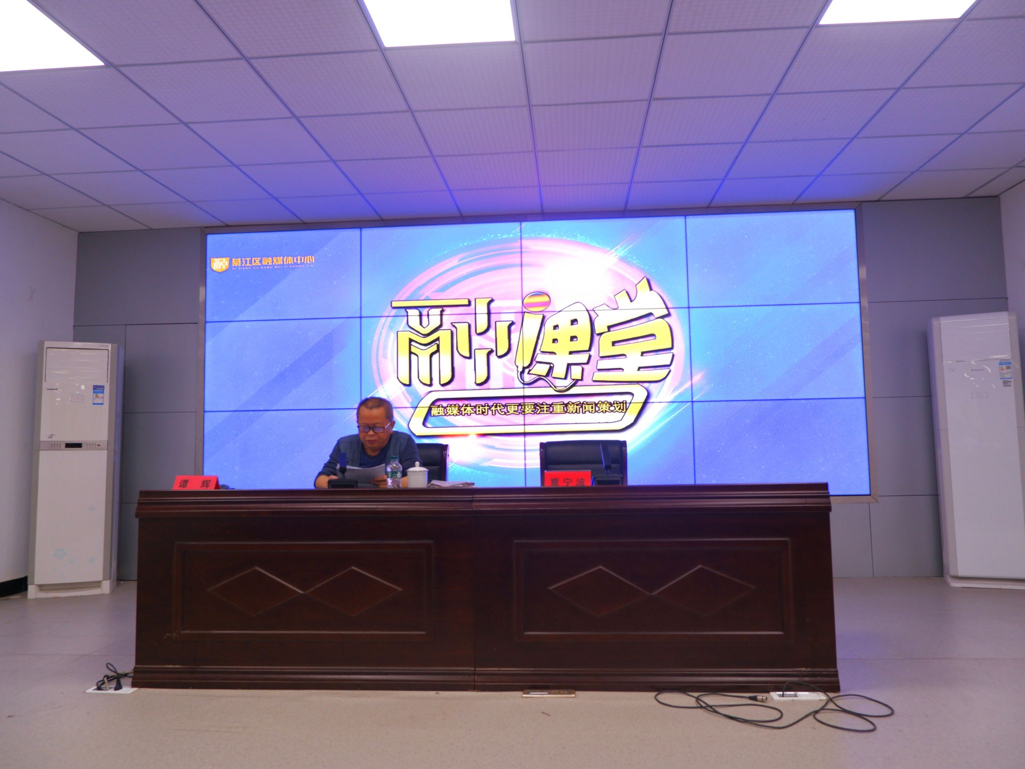 为进一步拓宽学习视野,增强学生知识储备。10月24日下午,新闻采写学院研修班九名同学在学院指导老师郝树静的带领下,来到重庆市綦江区融媒体中心融课堂,和融媒体中心的记者和编辑们一起,参加由重庆日报高级编辑邓红梅老师和谭辉老师开设的新闻主题讲座。