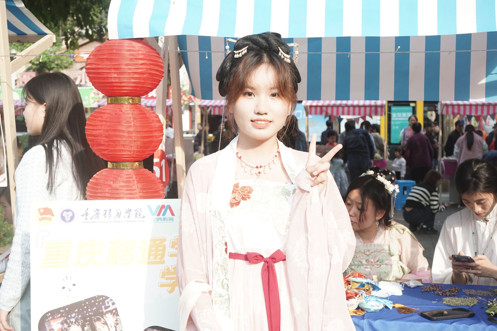 10月20日-10月23日,信息安全学院携手学生社团管理中心美食协会、colorful美妆协会、“青花墨字”书画社、华韵汉服协会4个特色学生社团,共同参与了綦江区文龙街道以“秋色物语花间情·寒露练江敬老意”为主题的重阳公益集市。信息安全学院和学生社团充分融合“完满教育+商科教育”,设置10个互动式义卖摊位,以集市为载体、直播为形式输出重阳文化,展现移通风采。本次集市义卖共计收益2699.8元,将以信息安全学院和学生社团的名义捐赠到我校爱心基金。