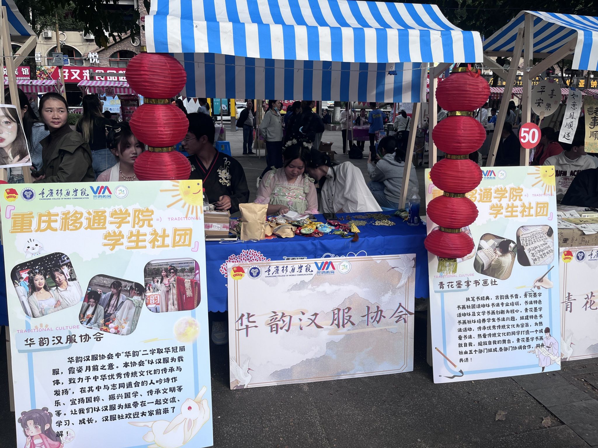 三天的集市活动转瞬即逝,从校内到校外,移通学子的活动方式不断突破。本次公益大集不仅展示了中华传统文化的魅力,还展示了移通学子的风采,更体现了信息安全学院、学生社团以及綦江区文龙街道的谆谆友谊,为后期的校地合作打下坚实的基础。