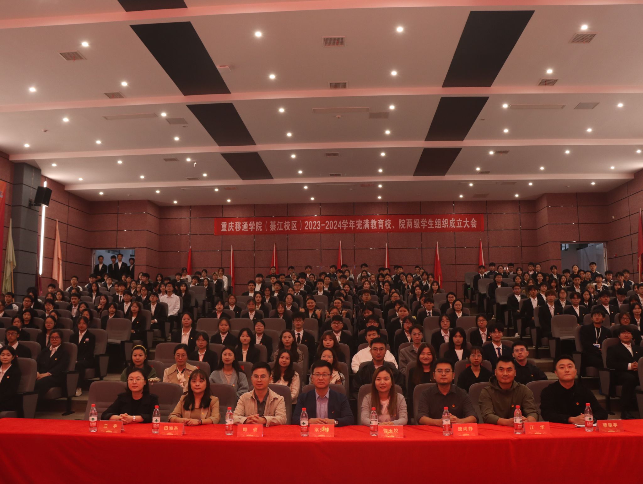 10月24日中午,綦江校区2023-2024学年完满教育校、院两级学生组织成立大会在贤者楼423多功能报告厅成功举办。此次成立大会分为主会场和线上集中观看分会场,校、院两级学生组织成员共同参与此次完满教育校、院两级学生组织成立大会,线上线下覆盖参与人数达1000余人。学校有关领导、完满教育系统各职能单位负责人、各学院团总支书记、学工办主任、各书院综合办主任、学生组织指导老师莅临本次成立大会。