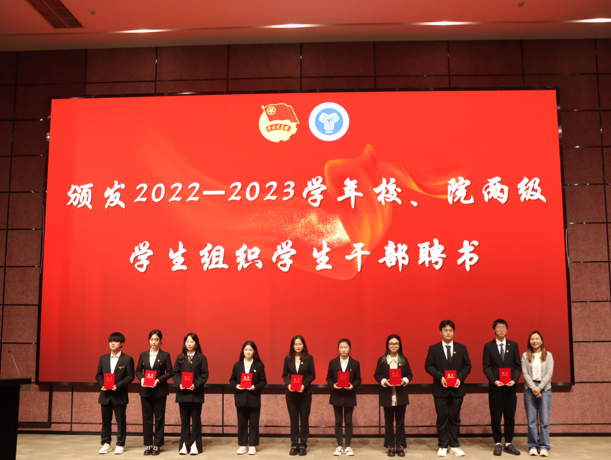 在过去的一学年里,校、院两级学生组织全体同学们们尽职尽责,彰显青春责任与担当,以优异成绩高质量完成各项工作任务。由书院部副部长曹玉姣老师为2022-2023学年完满教育校、院两级学生组织学生干部代表颁发聘书。聘书代表着学校对每一位学生骨干的信任与肯定,也是对未来工作的激励和期许。相信在新的一学年里,新一届干部干事也能以此为标杆,为学校高质量发展贡献出自己的力量。