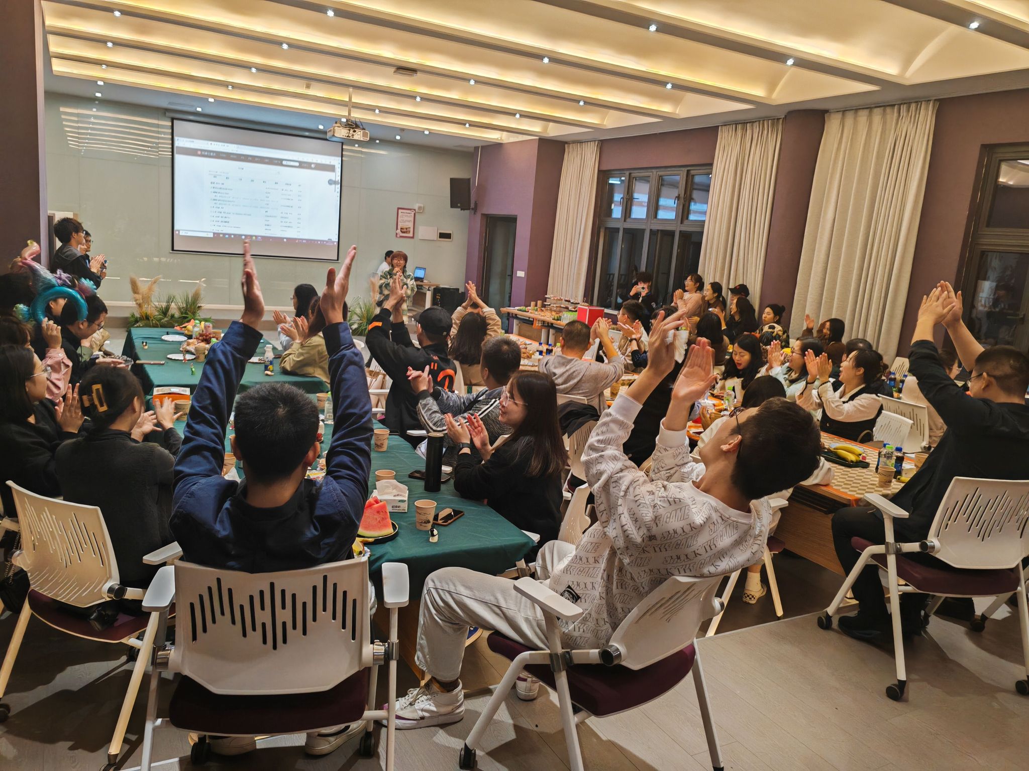 在游戏环节,交流酒会共设置了“数字抱团、交头接耳、害你在心口难开”等趣味游戏,老师们积极主动参与其中,互动、交流、共情,将酒会氛围推向了高潮。游戏有趣又有料,老师们纷纷参与其中,通过团队合作和个人的智慧与力量完成任务,欢声笑语沉浸在整个趣味活动各个环节。交流酒会还设置了令老师们惊心动魄的抽奖环节,每位老师翘首企盼,都希望能够成为“幸运儿”,在一片欢声笑语中,新进老师们欢快地度过了难忘的夜晚。