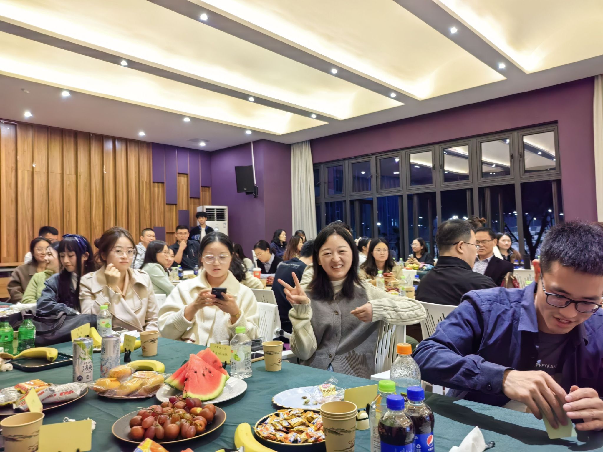“热烈欢迎新进教师们!”随着主持人的主持发言,交流酒会正式揭开序幕。同学们再次带来精彩节目,将整场酒会推向另一个高潮;大数据学院新进教师李昌茂老师为大家带来了歌唱节目,赢得阵阵掌声。在酒会交流环节,新入职的老师们畅所欲言,既聊工作、又谈生活,对入职以来的真切感受进行了探讨交流,彼此也带去问候与期许。