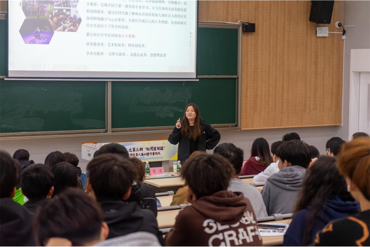 接着,由学生社团管理中心主席段宇璐公布了分班名单。班级学员各具特色,希望他们可以在学习的过程中懂合作、善沟通、会协调,与社团成员共行完满之路;齐心协力,积极互动交流,为以后的理论和实践课程做好准备,努力成为优秀社团骨干。
