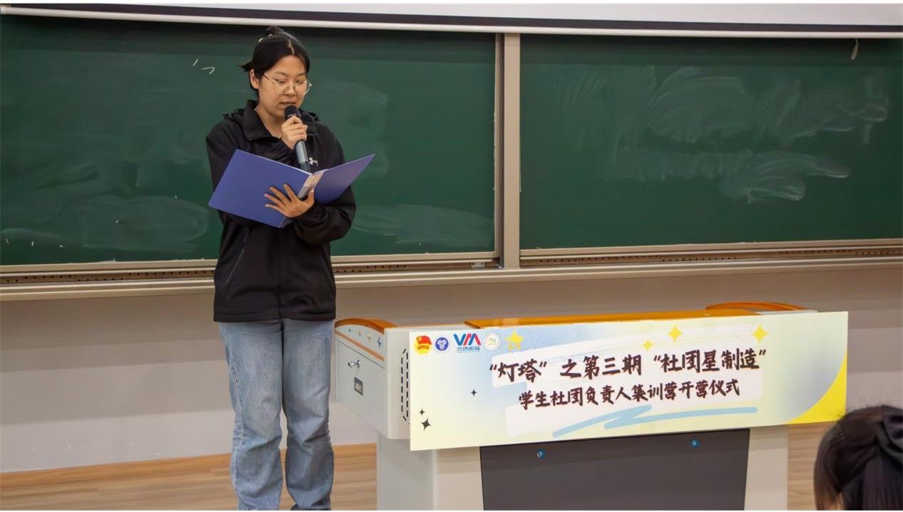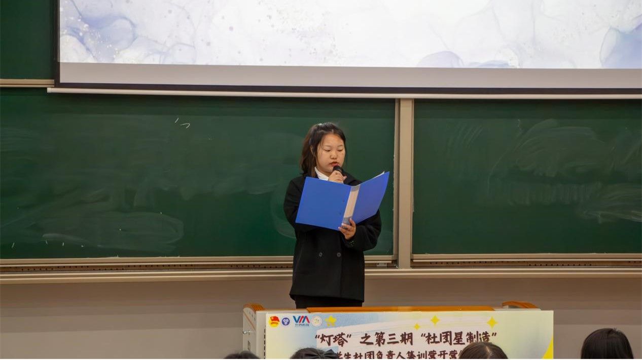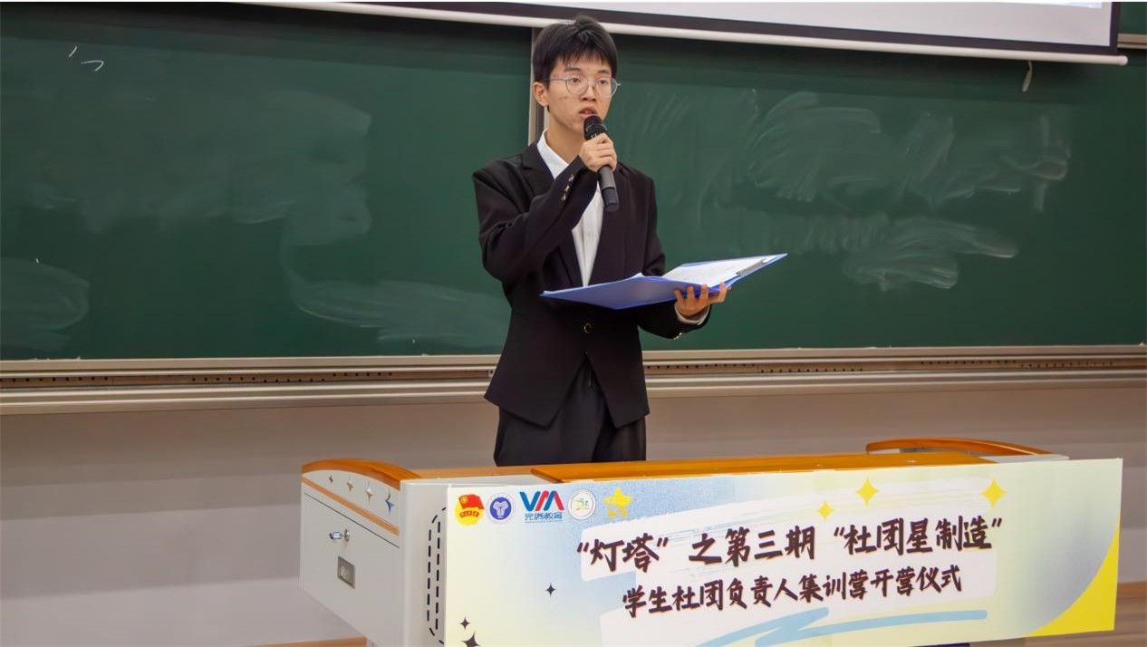 10月26日12:00“灯塔”之第三期“社团星制造”学生社团负责人集训营开营仪式在横山阶梯教室正式拉开序幕,莅临本次开营仪式的老师有青花墨字书画社指导老师胡垚老师,电影协会指导老师谭雪老师,校团委社团发展中心主任杨佳燕老师,校团委社团活动板块指导老师蒋莉老师。活动伊始由主持人致开场词,全体成员起立奏唱团歌。