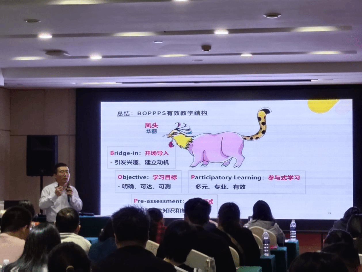 本次学习活动的主讲人是贺利坚教授,翻转课堂实践专家。贺教授基于 OBE 理念以学生为中心的课程教学大纲设计撰写与教学实施实操进行了深入分析探讨,分享了自己的经验和看法,并举出实际例子。在授课分享过程中,利用破冰行动、唱歌、分组表演、分组讨论等形式,带大家深入体会翻转课堂的魅力。