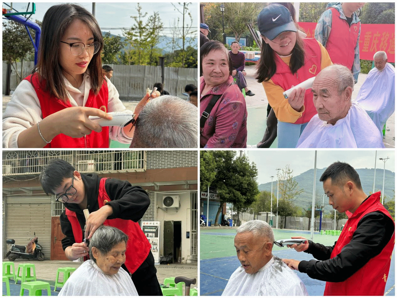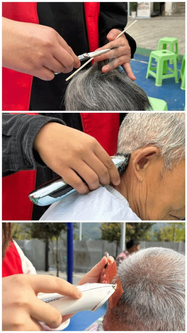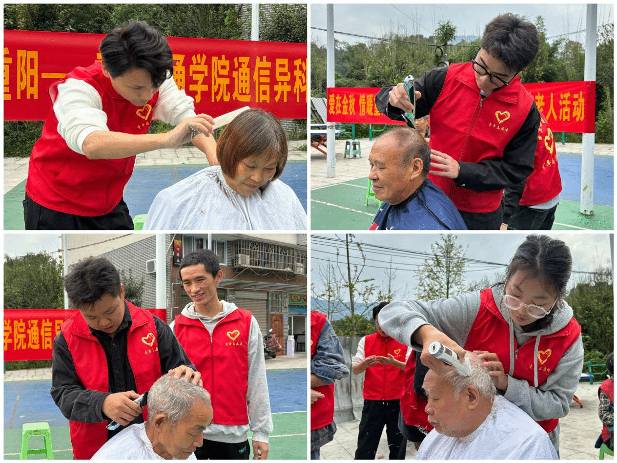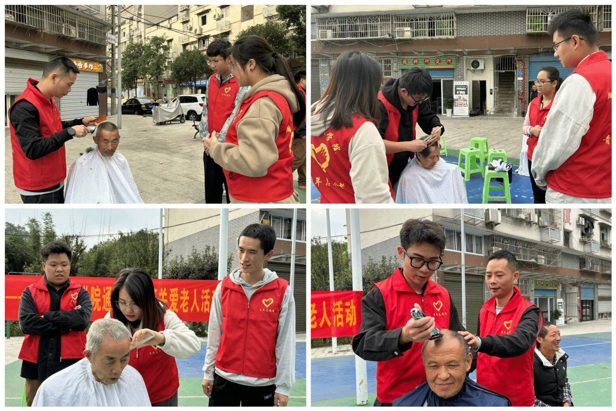 2023级通信工程1班 何星妍:尊老敬老一直以来都是我们中华民族的传统美德。我们作为新时代的大学生和青年志愿者有义务来担起这个社会责任,继续发扬这个延绵千年的传统美德。在重阳节这个意义重大的节日当天,我们来到了小镇上为老人免费理发,陪着老人聊天,虽然放弃了难得的休闲时光,但我们收获到的是玩乐中体会不到的内心满足与欢乐。