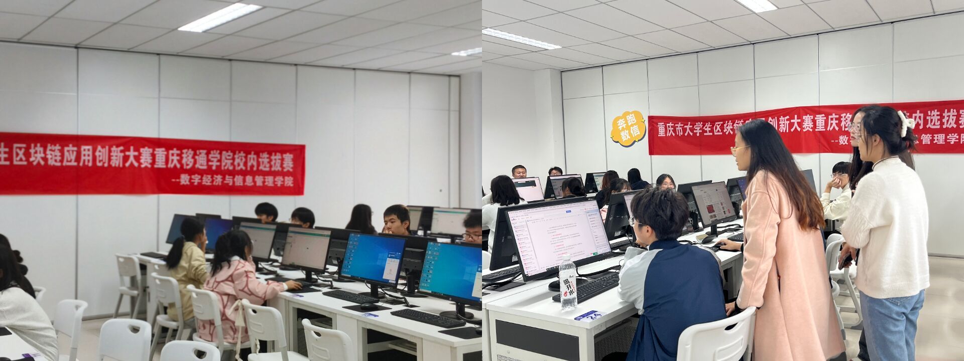 为了激发大学生对区块链技术应用与创新的兴趣,加深对区块链技术与创新应用的理解,拓展区块链应用的视野,10月27日14:00,数字经济与信息管理学院在数字经济实验室成功举办了重庆市大学生区块链技术应用创新大赛的校内选拔赛。本次比赛有幸邀请到数字经济与信息管理学院专业指导老师张菡老师、社团活动版块指导老师周静老师作为评委嘉宾出席。