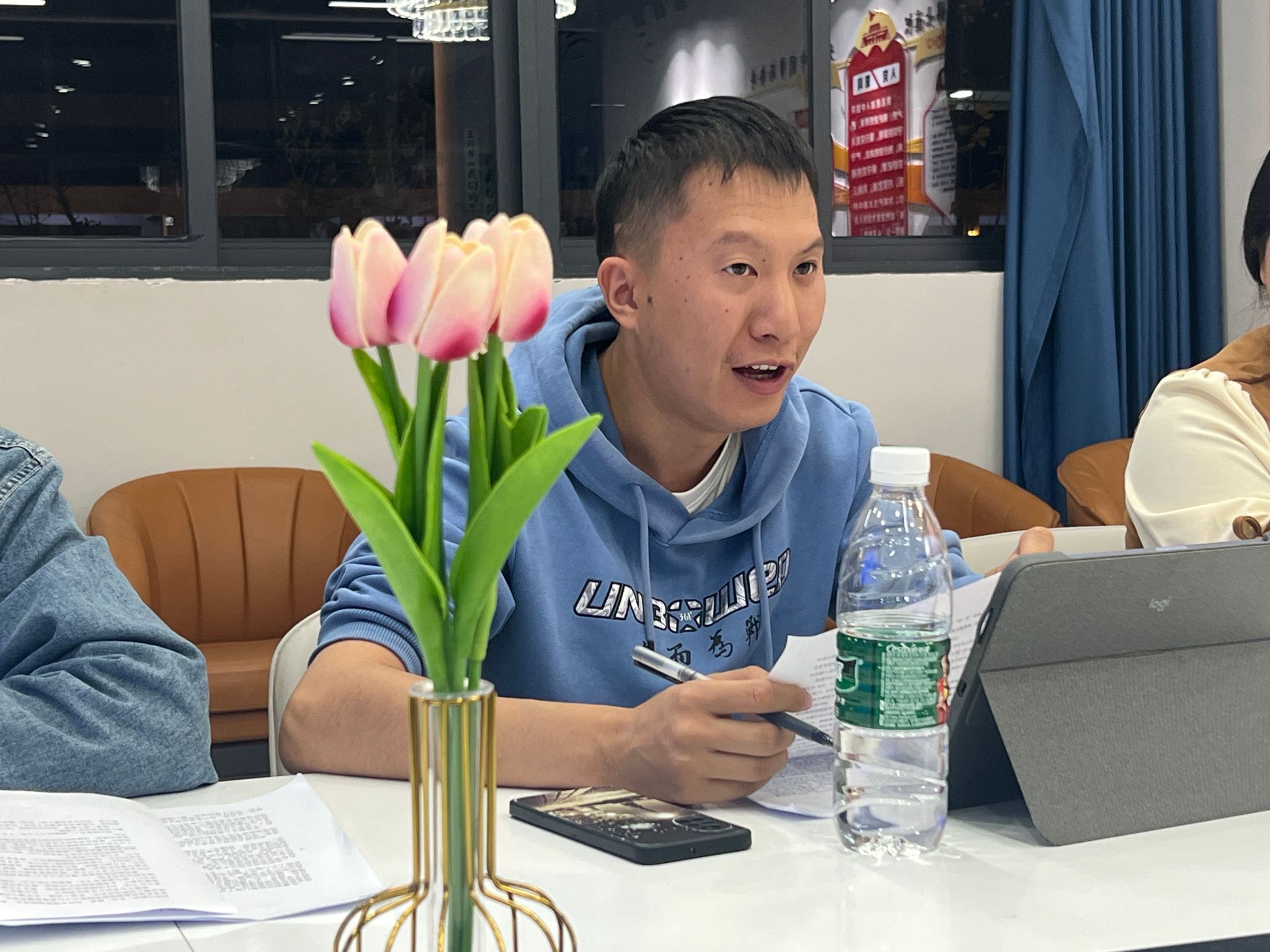 本次文学作品研讨会,是由信息安全学院和创意写作学院联手推出的重磅活动。大家在周老师的组织下开展对学生周迅亿《最可恨的人》与杜贾《天台》的品读研讨。整个研讨过程分为三部分:一是品读优秀学生作品。大家对两名同学的作品进行回顾,重温故事情节;二是阅读感想发表。学生与嘉宾们依次发表自己阅读后的感悟与体会,同时创作者对自己的主题理念与创作时的心路历程进行介绍与解说;三是老师指导环节。由创意写作学院网络文学工坊的周昶婷老师与诗歌工坊的黄明洋老师,对学生作品进行评价与建议。