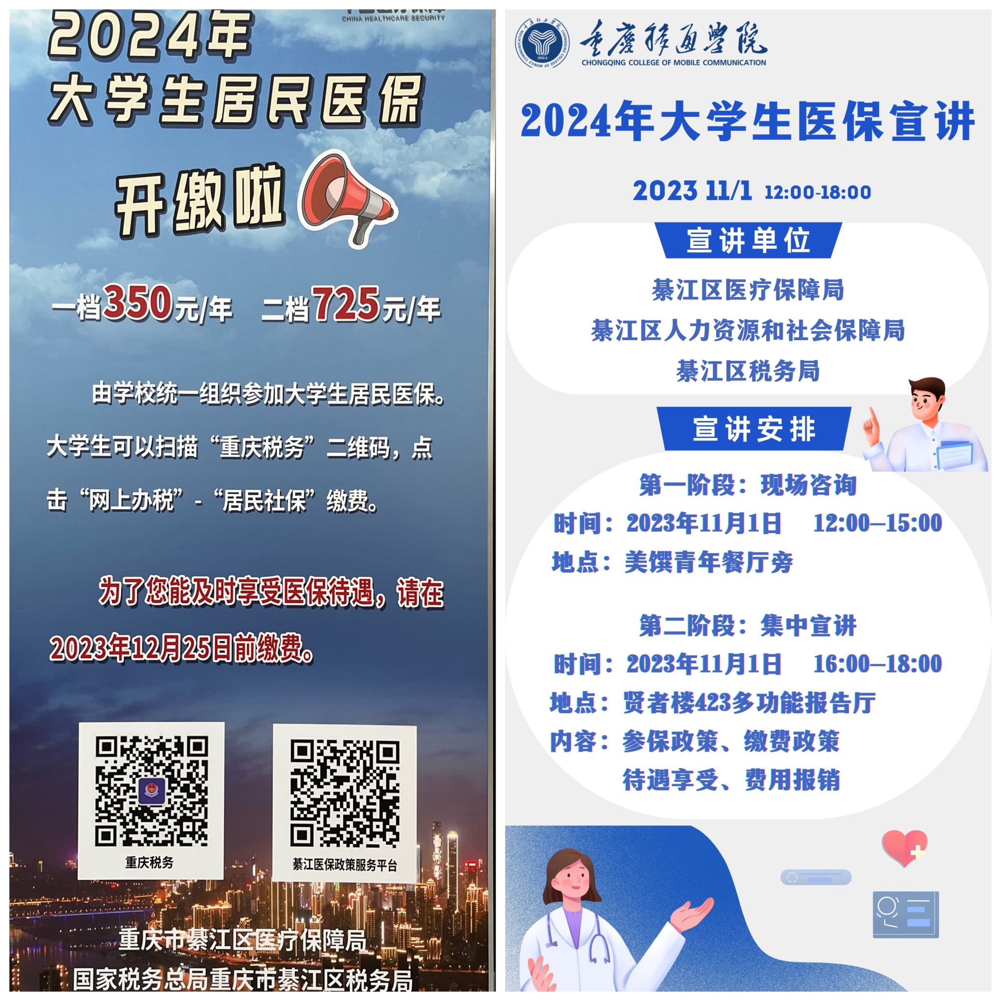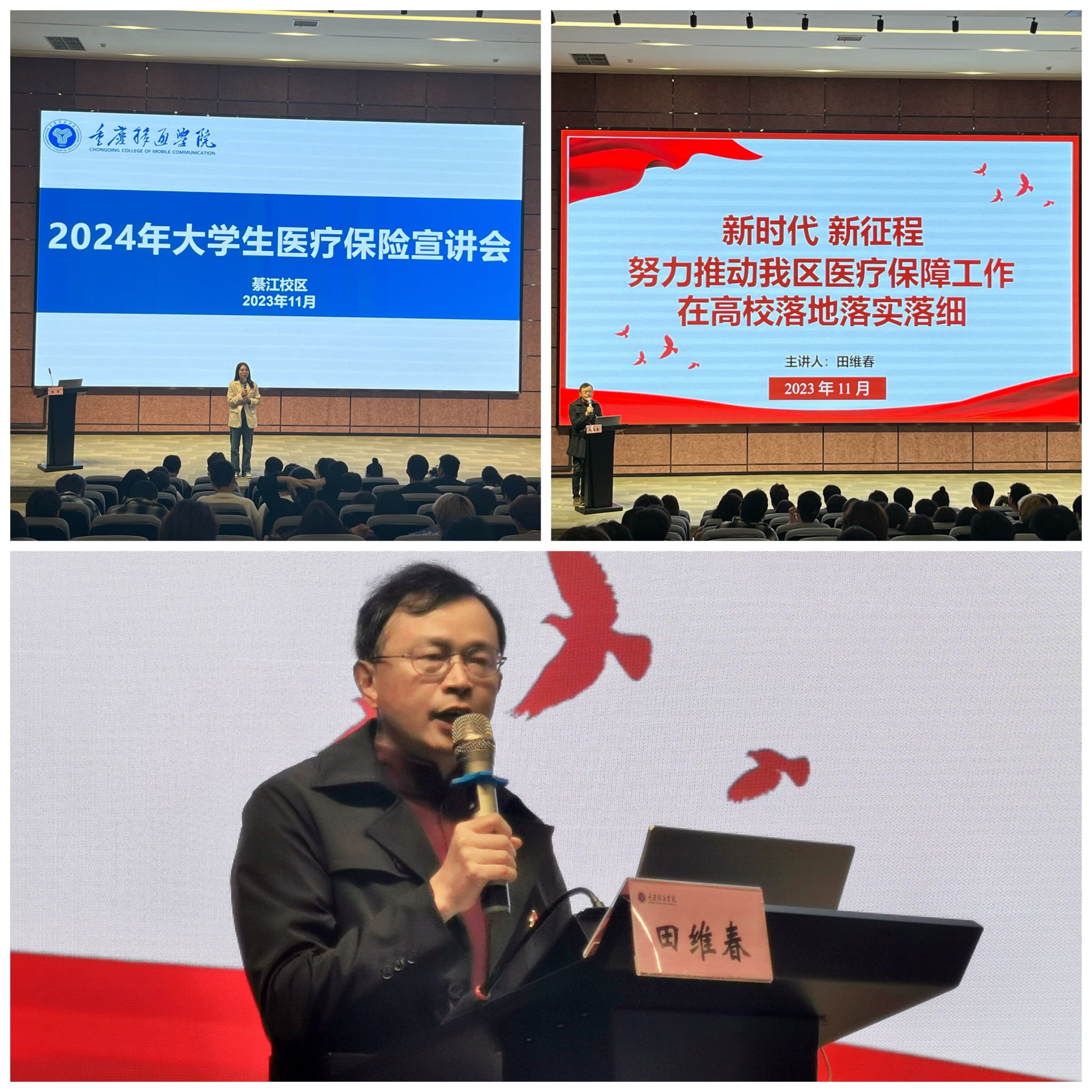 大学生医疗保险是社会医疗保障体系中不可或缺的重要组成部分。大学生医疗保险制度的实施,充分体现了党和政府对大学生医疗保障问题的高度重视,对保障大学生身体健康、构建和谐校园环境具有重要意义。为进一步普及大学生医疗保险政策,增加在校学生对大学生医疗保险的知晓度和参与度,切实做好2024年大学生参保宣传动员工作,营造良好的参保氛围。11月1日,綦江校区学生处联合綦江区医疗保障局、人力资源和社会保障局、税务局进校开展了2024年大学生医疗保险宣讲活动。