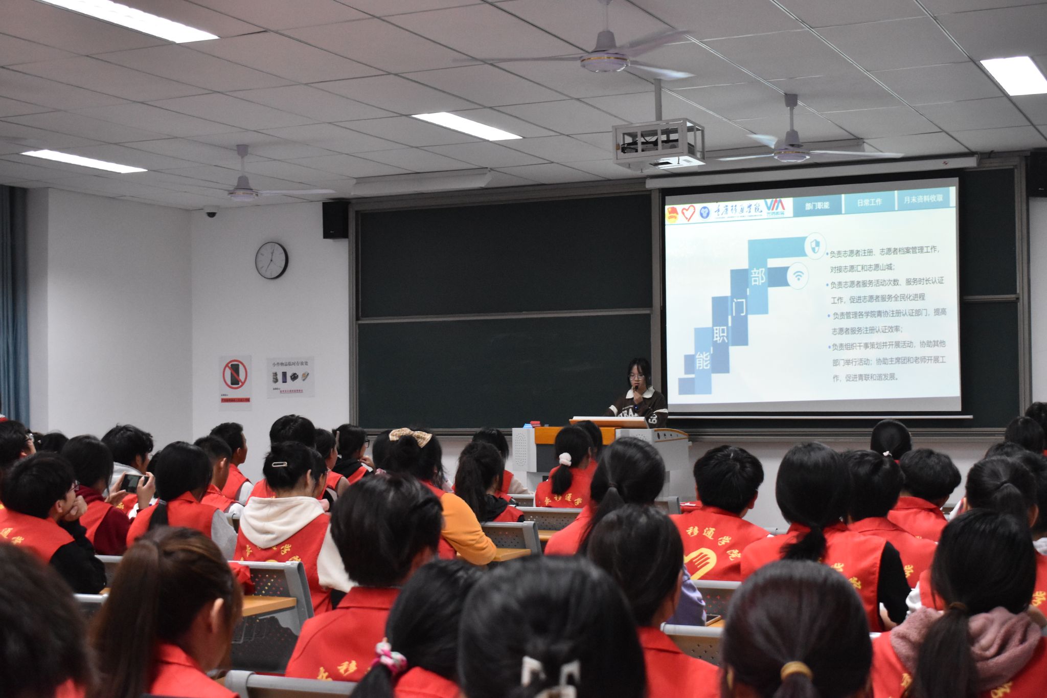 宣传调研中心负责人罗贵强介绍宣传调研中心日常工作内容,详细讲解志愿移通、新闻稿、青年志愿者联合会公文格式要求,他表明在接下来的活动中会扩大宣传,更加严格管理,并且希望各部门成员能积极转发活动通知,鼓励更多同学参与此活动;推广交流中心负责人李玉婷向大家介绍推广交流中心的职能及作用,表明会加强宣传我校志愿服务精神,促进志愿服务全校化,部门成员会不断提高自身技能和各方面能力以及会认真接受建议,为大家的工作带来便捷。