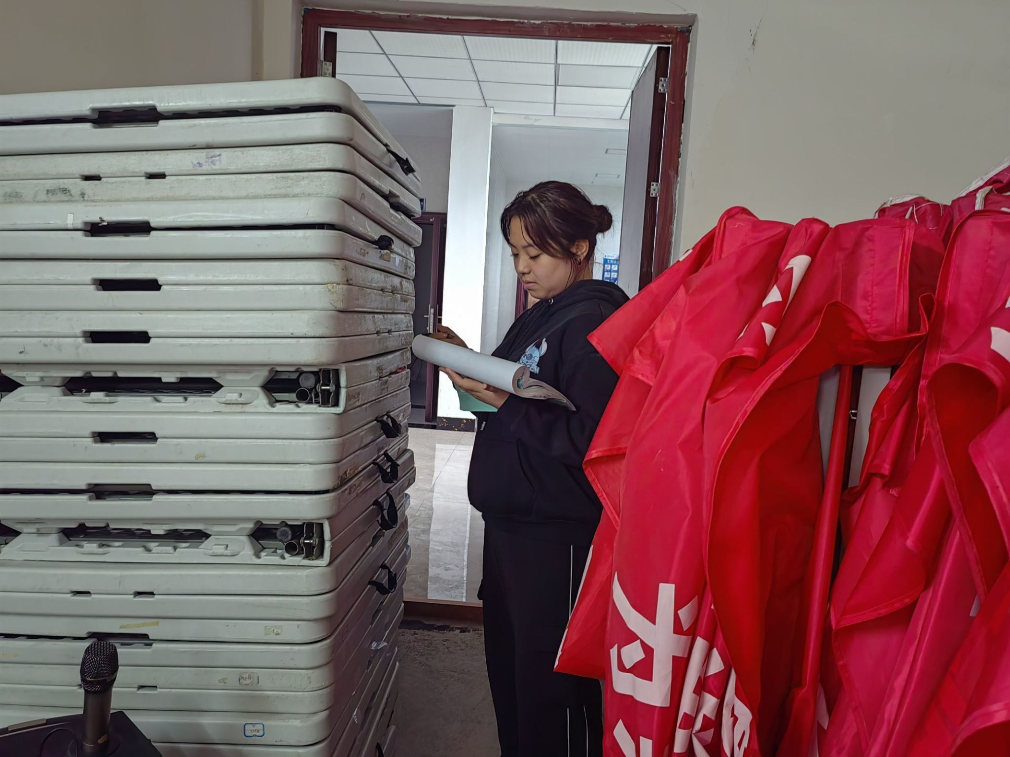 在精彩纷呈的活动现场,大家都会关注些什么呢?是活跃欢乐的气氛,还是精心细致的现场布置?其实在大家看不到的地方有这么一群人,他们默默付出,为完满教育日常活动的成功举办提供了充分的物资保障,他们是校学生会办公室。开学至今,物资借用次数达105次,其中,桌子帐篷等物资最常借。迎新晚会期间,为给全校师生提供良好的观看条件,负责统筹安排现场凳子近14000根。他们遵循着“全心全意为同学服务”的宗旨,默默付出,他们的身影出现在每个活动中,为同学们能够在活动中有更好的体验感,真正地在活动中提升、完善自我做好坚实后盾。他们希望用自己对完满教育的炽热之心,保障完满教育日常活动以及各单位活动的顺利开展。