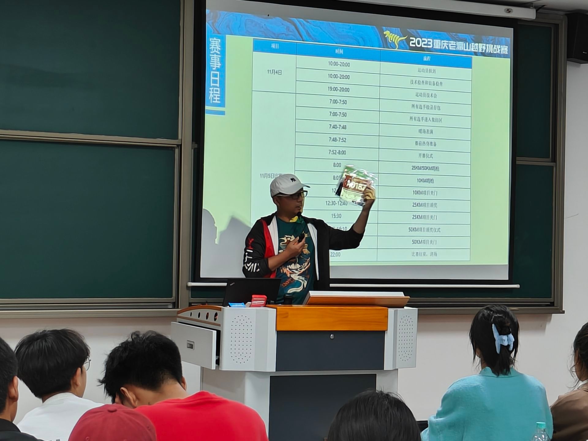 11月4日,志愿者们迎着晨光来到綦江区老体育馆,听从工作人员的安排,完善比赛物资、核实参赛选手身份信息,并协助裁判为参赛选手进行赛前装备检查与物资发放。夜幕降临之时,我校志愿者现身赛前技术会现场,指引参赛选手入座并认真维护好现场秩序,保障培训会的顺利进行。