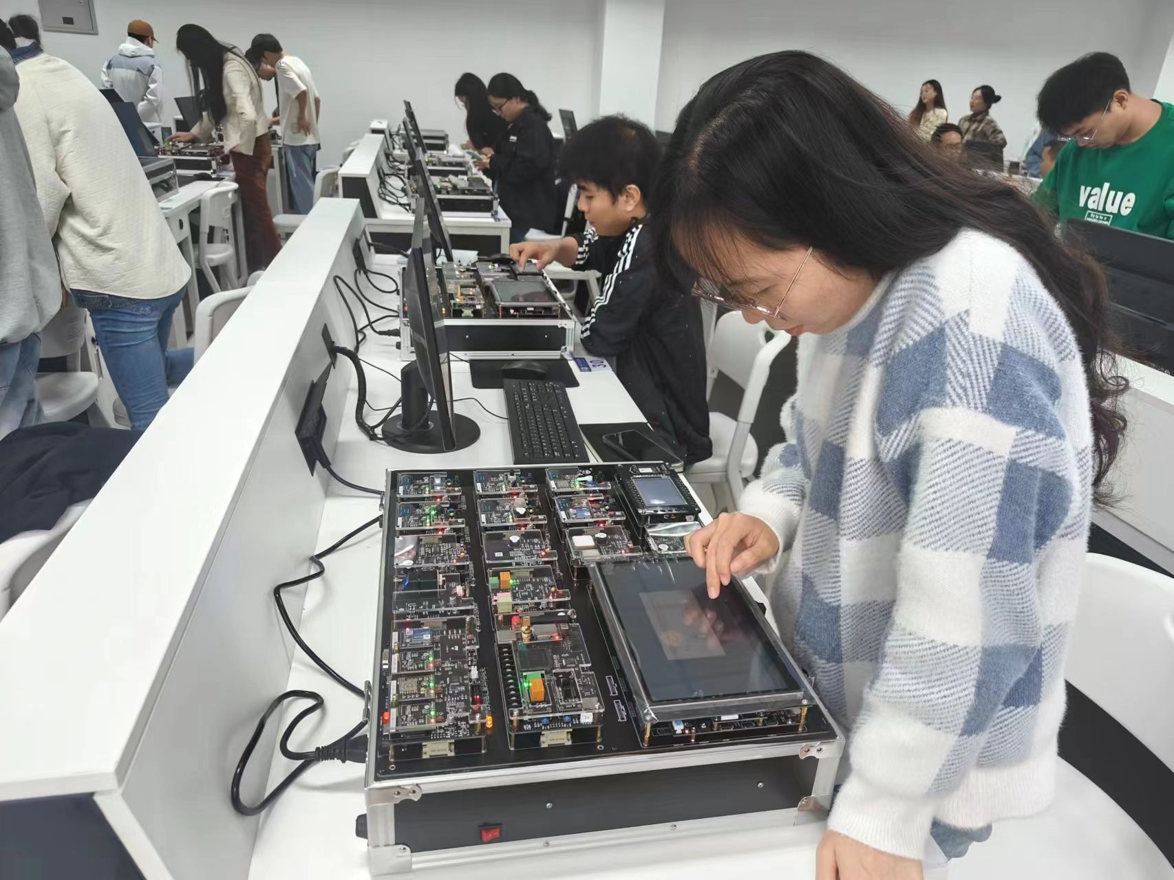 涂柯工程师就物联网实验箱和嵌入式实验箱进行了非常详尽的介绍与讲解,并邀请各位参会人员自己动手操作。物联网综合应用实验室是软硬件结合教学,不仅需要学习相关的软件知识内容,更需要提高动手操作的能力。