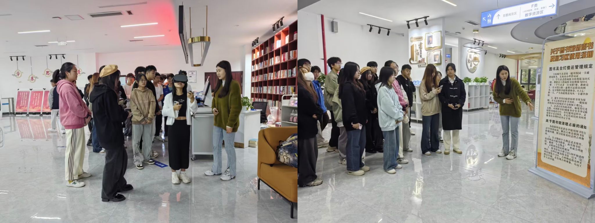 图书馆老师带大家熟悉完图书馆的基本情况后,便带领同学们来到了图书馆服务台,让大家在VR世界中体验与现实生活中完全不同的图书世界;那为了小小测试萌新们开学以来到图书馆的次数和爱学习的程度,图书馆老师在导览过程中展开了图书馆相关问题的抢答环节,活动氛围非常融洽,回答正确的小萌新们也拿到了图书馆为大家准备的开学好礼。