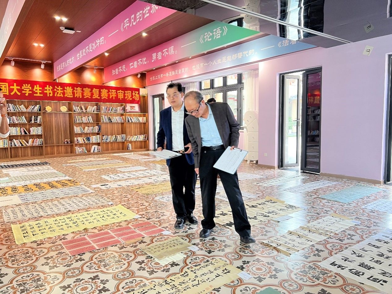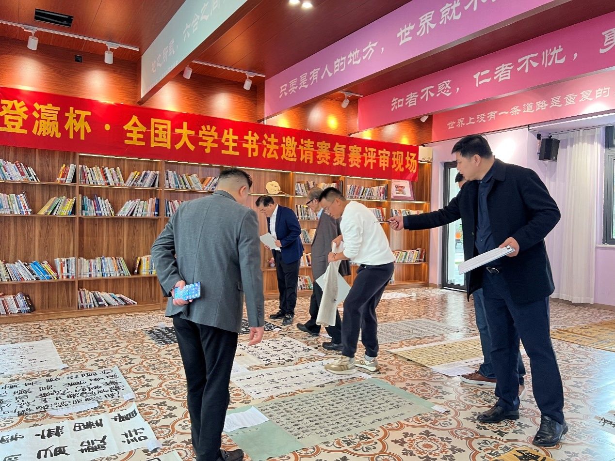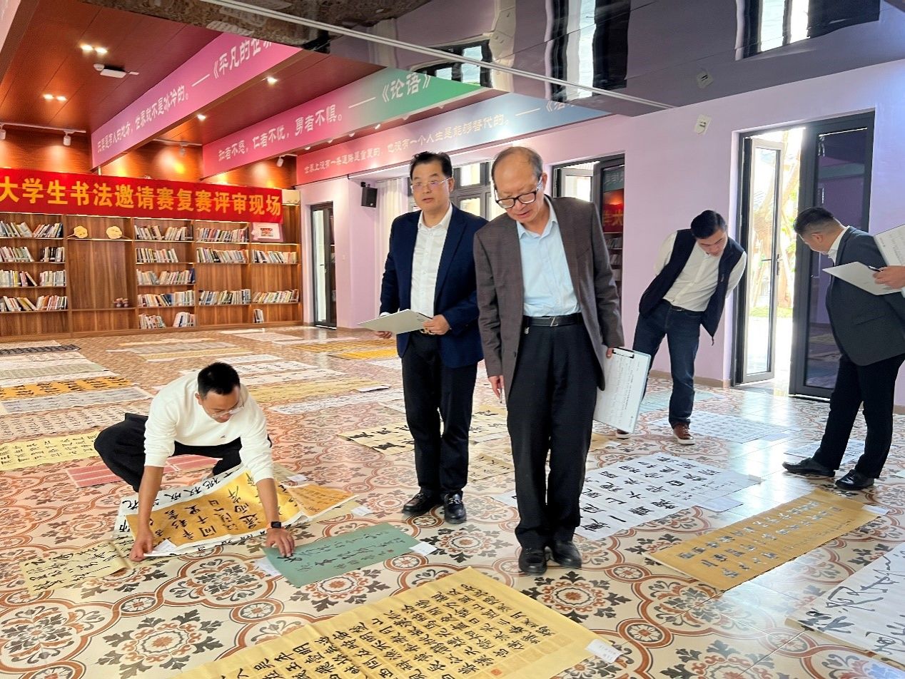 11月6日于重庆移通学院綦江校区观云书院芒种·华文书吧开展复赛评审,邀请了重庆市硬笔书法家协会主席蔡锡田、重庆市硬笔书法家协会副主席曾继明、重庆市硬笔书法家协会监事长马涛、重庆市硬笔书法家协会高校大书法工作委员会秘书长仇山川、重庆市硬笔书法家协会理事兼秘书长陈燕平、青花墨字书画社指导老师胡垚进行现场评审。
