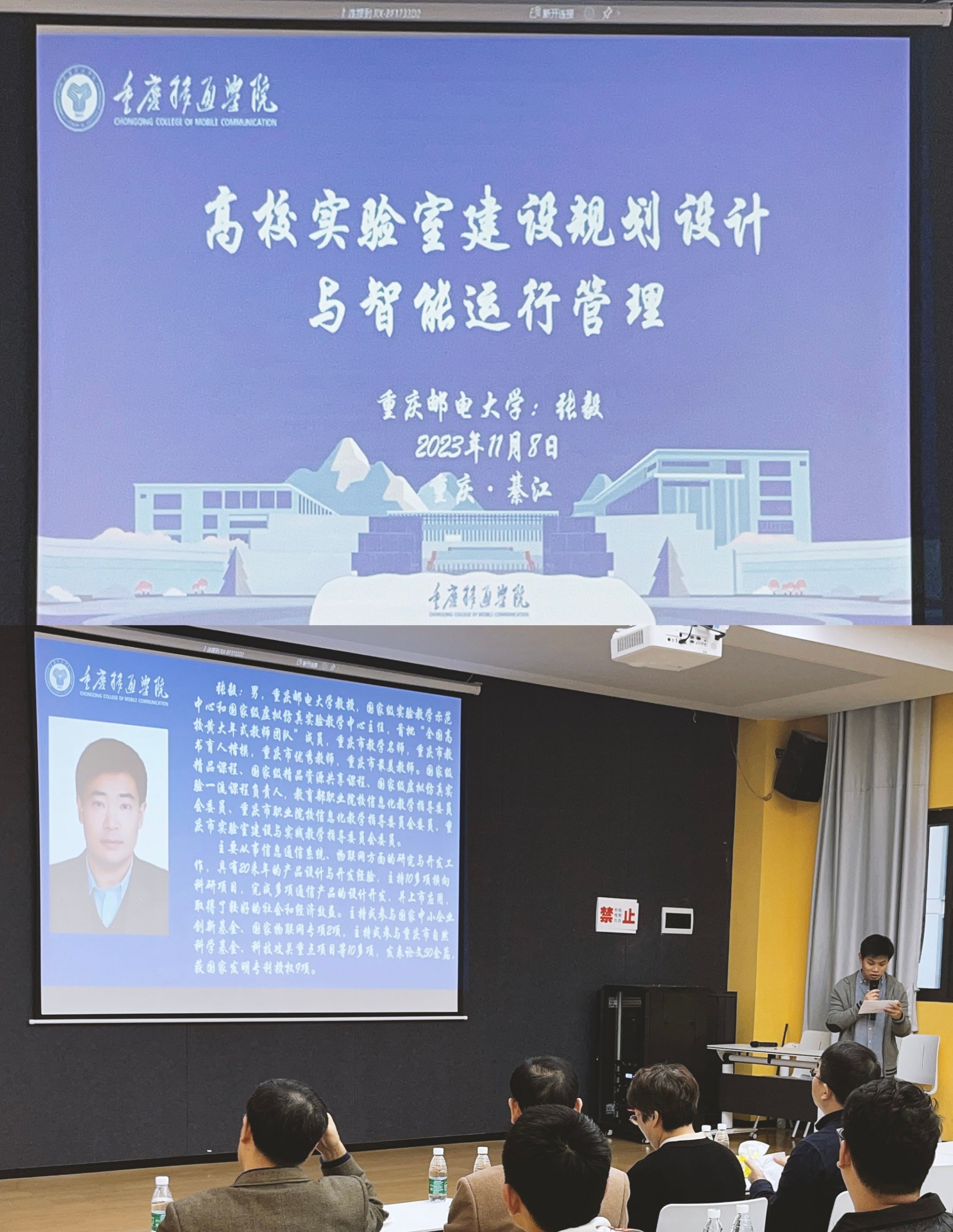 11月8日15:45,在綦江校区实训中心组织下,召开“高校实验建设规划设计与运行管理”主题报告培训会,培训邀请重庆邮电大学张毅教授进行讲解,会议于瀛溪书院回声报告厅开展,由实训中心副主任郭爽主持,实训中心全体教师及各相关教学单位参与培训。