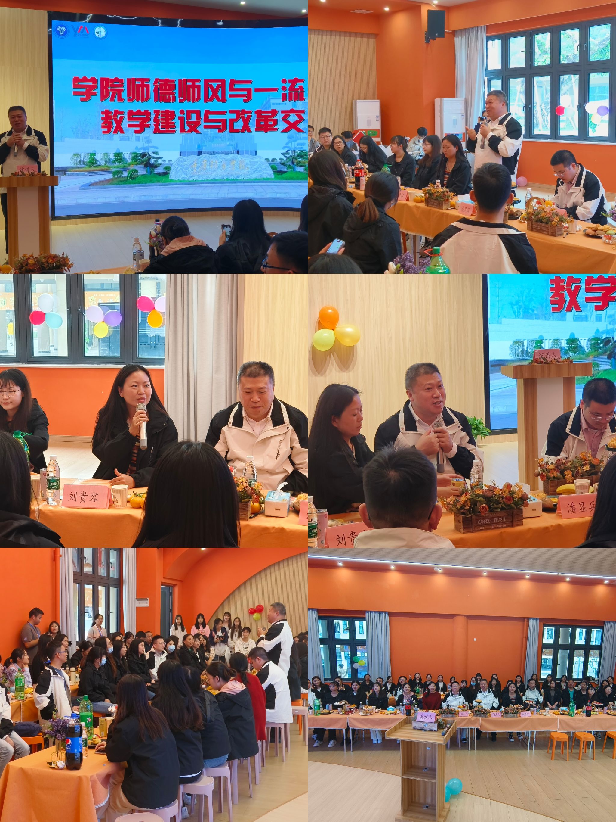 在酒会的一流教学建设与改革教师座谈会上,学院院长潘显兵就学院未来的发展规划与大家分享,并提出各科专业及其教研室未来的工作重点,落实立德树人,守好教育责任田,办学生满意的专业,教学生满意的课堂,做学生满意的服务。座谈会上,每位老师也都发表了自己一流教学建设的思路与计划。