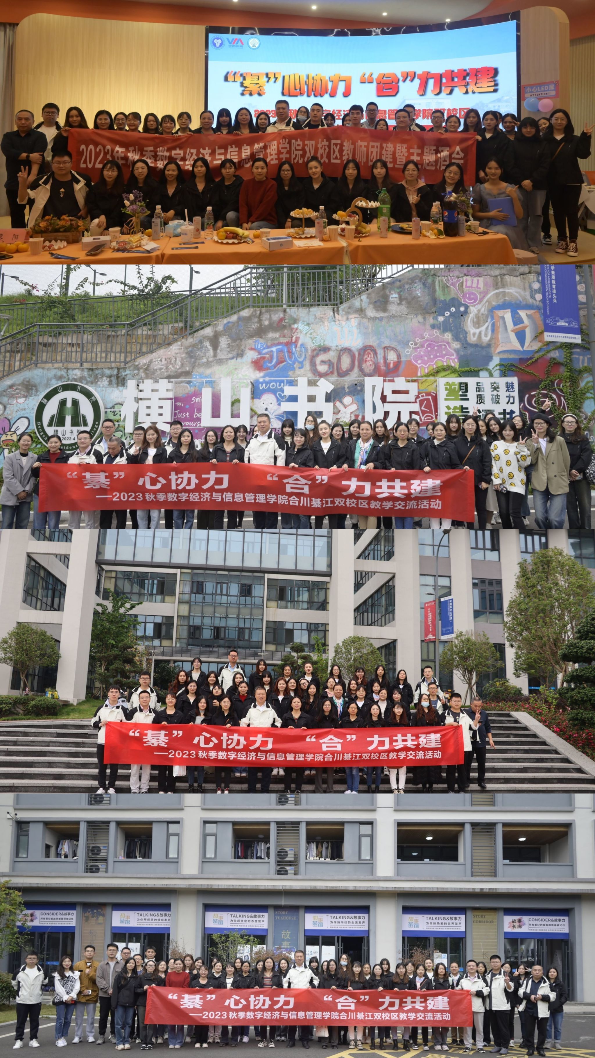 为了加强“合川”“綦江”两校区工作协同,建立长效沟通机制,凝聚两校区师资力量,稳定师资队伍,助推学院高水平发展,数字经济与信息管理学院两校区工会小组联合开展了“綦”心协力 “合”力共建——2023秋季数字经济与信息管理学院双校区教职工教学交流活动。