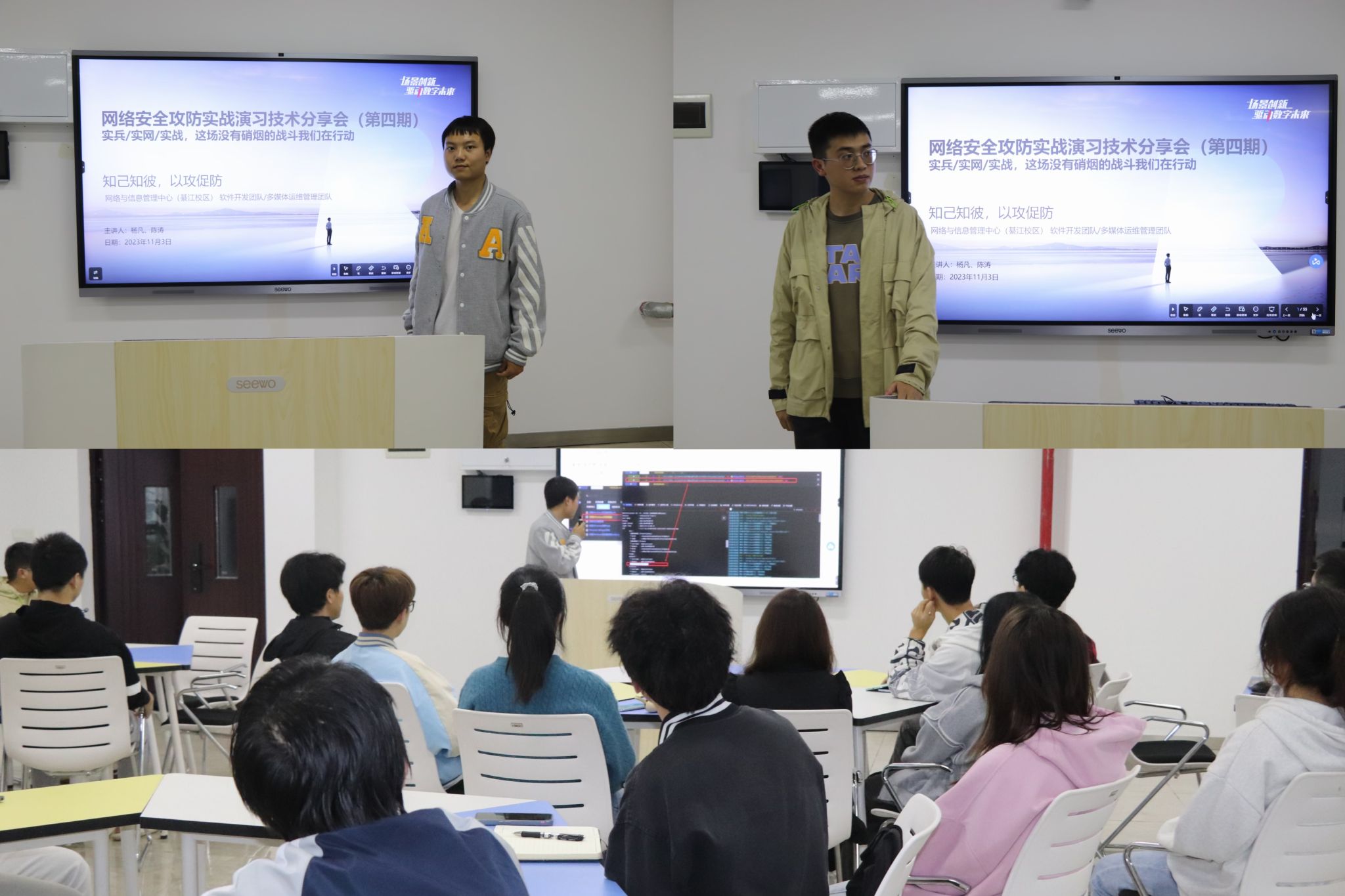 同时为进一步加强网络与信息管理中心各团队成员的网络安全防范意识,提升同学们对护网行动的了解,于11月3日由网络与信息管理中心主办的网络安全攻防实战演习技术分享会,在綦江校区实训中心105智慧教室举行。本次分享会由护网大赛参赛队员扬凡、陈涛同学进行理论知识介绍及具体护网基础操作讲解,各团队成员及网信中心全体老师参加,共计40余人参加此次分享会。