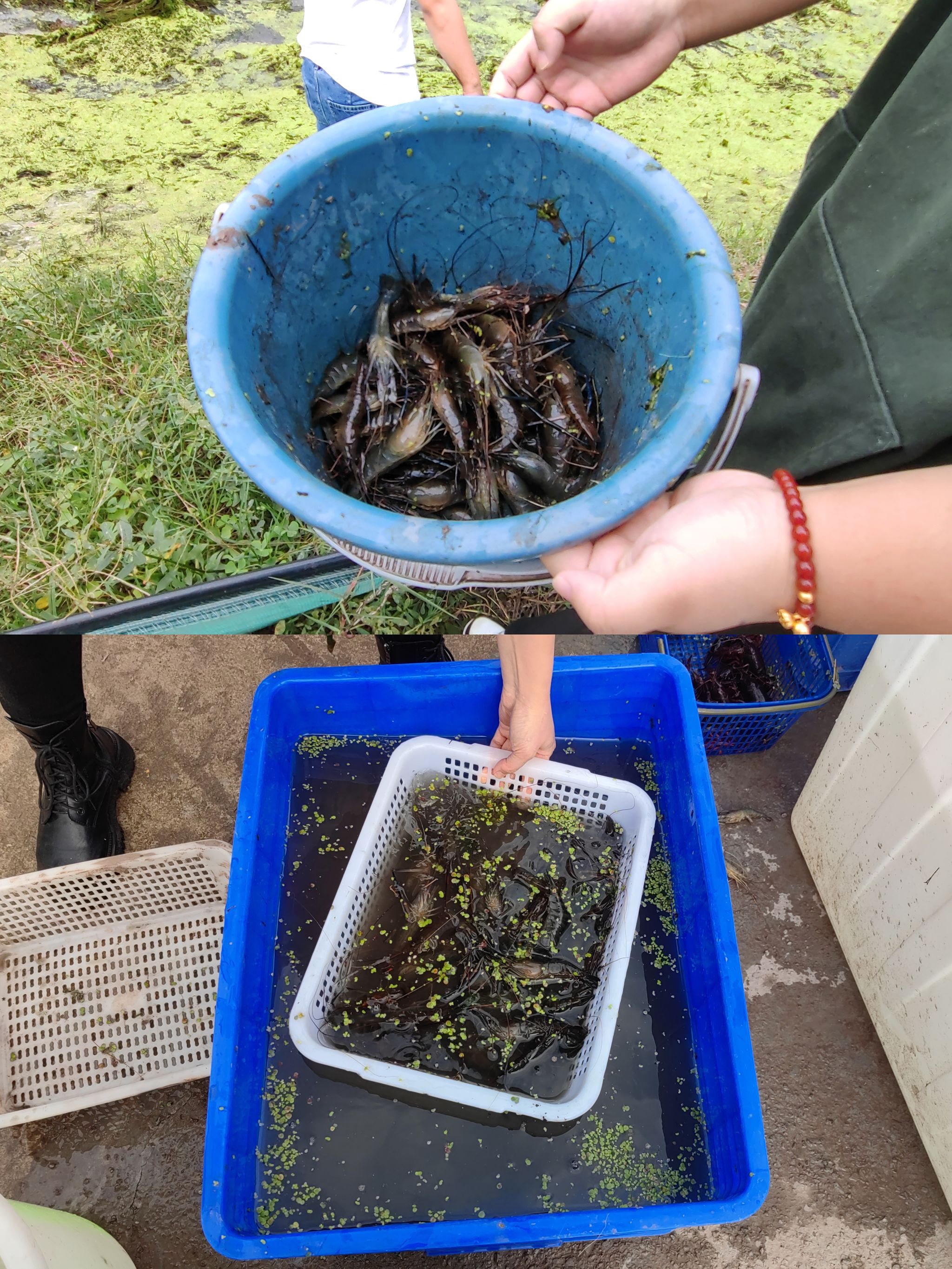 伴着大片暖阳的出现,各小队也做好了捉虾前的准备工作,拿着提前准备好的工具,穿戴整齐,信心满满,迫不及待的想要下去捉虾。来自“公主请捉虾”队的成员率先进入活动区域,手牵着手在保持平衡的同时,出手快、准、狠,再一甩,很快篮子里就装满了虾。同时,“虾老板”队和“三带一”队也迅速加入战斗,每个人都被泥田吸引,全身心投入到捉虾活动中。突然跳出的青蛙也是给了同学们不小的惊喜,大家互相配合想要将青蛙也收入囊中,有的围,有的堵,有的伸手去够。此时的大家都聚集到一起,已经忘记了旁边的同学是不是自己的队友,都凑到一起去抓虾,而岸边的同学也没有闲着,加油鼓劲的同时,也在帮忙从篮中将虾分离出来,用清水过滤,清洗干净,放入桶中,再主动将已经放满虾的桶搬送到指定位置,配合队员加快效率。随着时间流逝,活动也慢慢接近尾声,各小队将收获的虾称重后,跟着村民一起打包进行售卖。