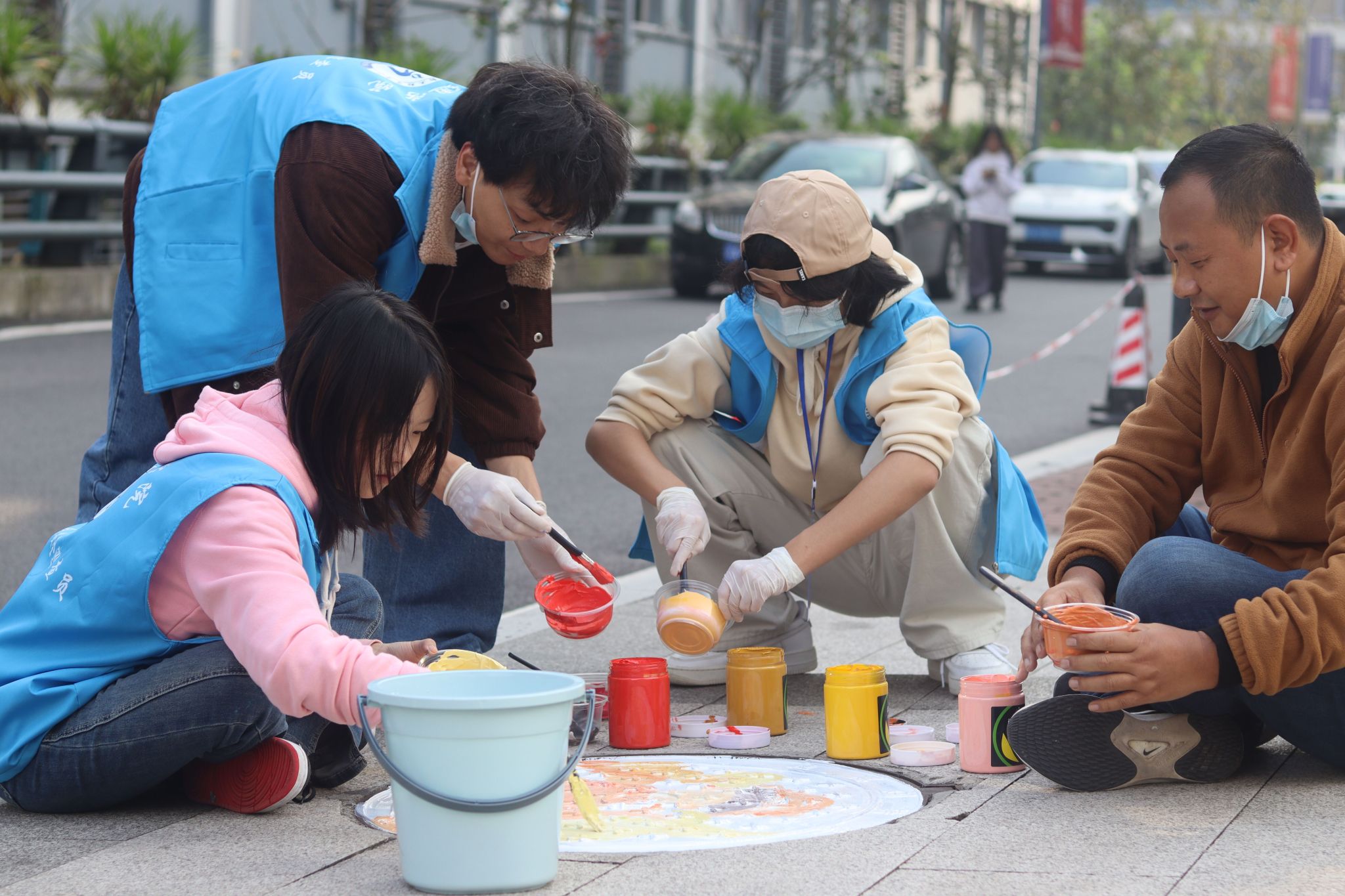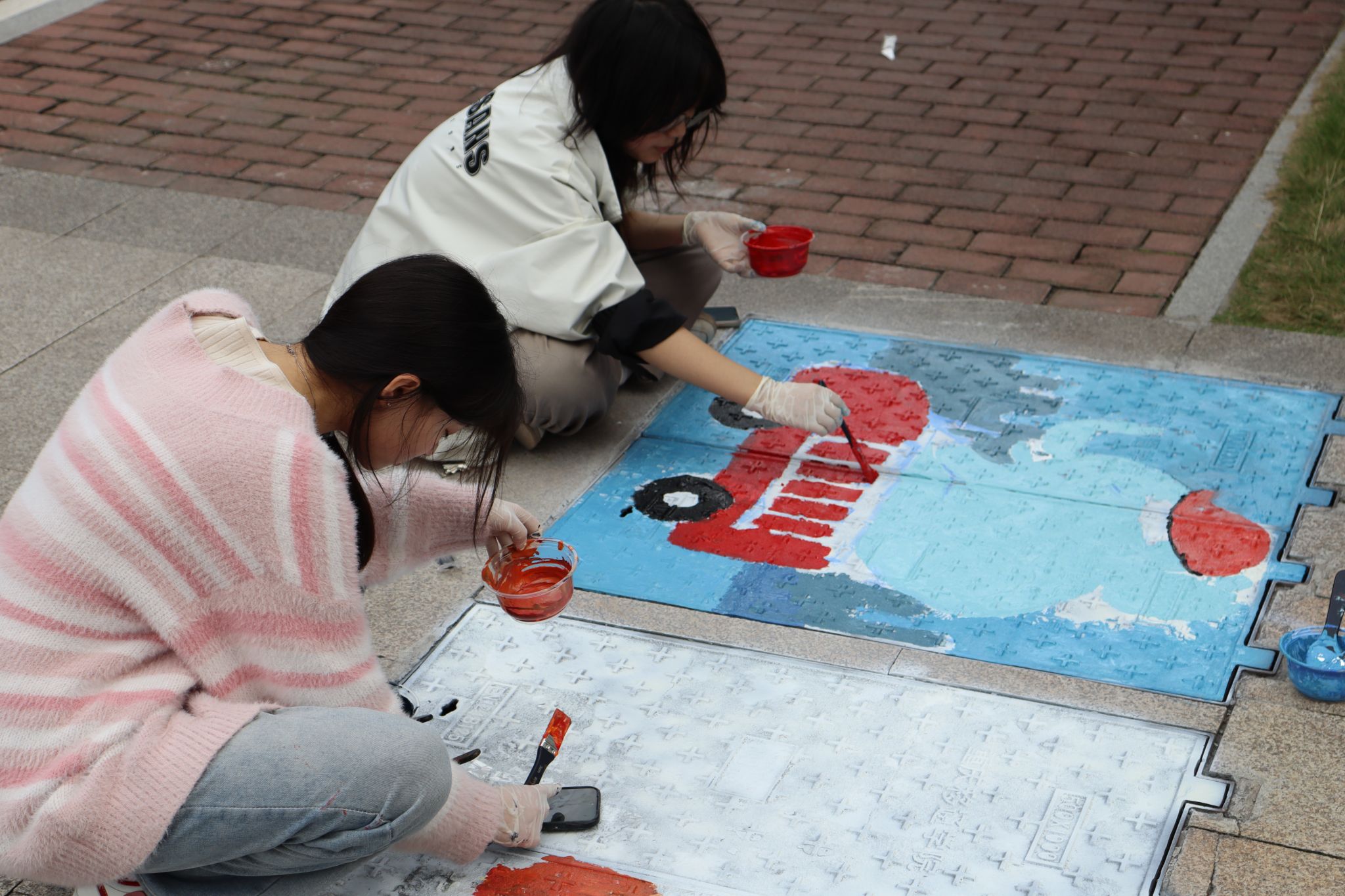 活动结束后,同学们主动将颜料等物资进行规整,及时清理现场垃圾。同学们兴高采烈地与自己的画作合影。一位路过的同学表示:“这些井盖看起来实在太漂亮了!走在这条路上,心情都舒畅了不少呢!”
