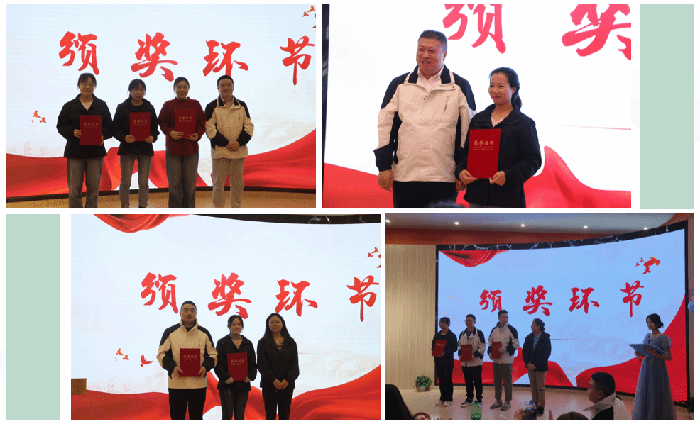 经过紧张激烈的角逐,最终公布各位评委的打分后,张红老师获得了一等奖,乔兴刚老师和吴丽玉老师获得了二等奖,潘锐老师、胡红琼老师和刘艳利老师获得了三等奖,由三位评委为他们颁奖,并进行合影留念。