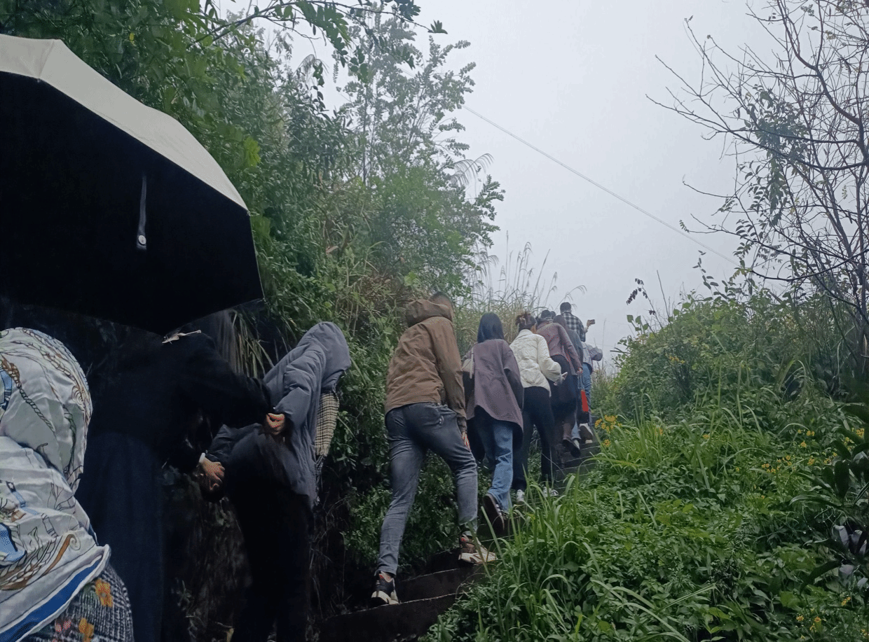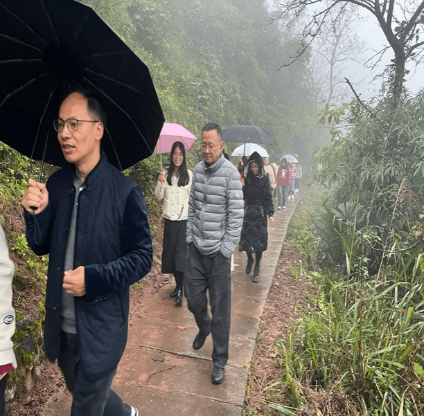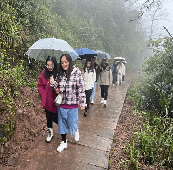 为了丰富公共基础教学部教职工的文体生活,增进教职工的友谊建设和情感联系,提高教职工团队向心力和凝聚力。11月15日下午16时,公共基础教学部全体教职工在校门口集合,自驾前往老瀛山白云观,举行一场主题为“‘綦’心协力‘毅’前行”的登山活动。虽阴雨绵绵,但寒冷依旧难以抵挡大家的热情,现场氛围十分和谐,欢乐无限。