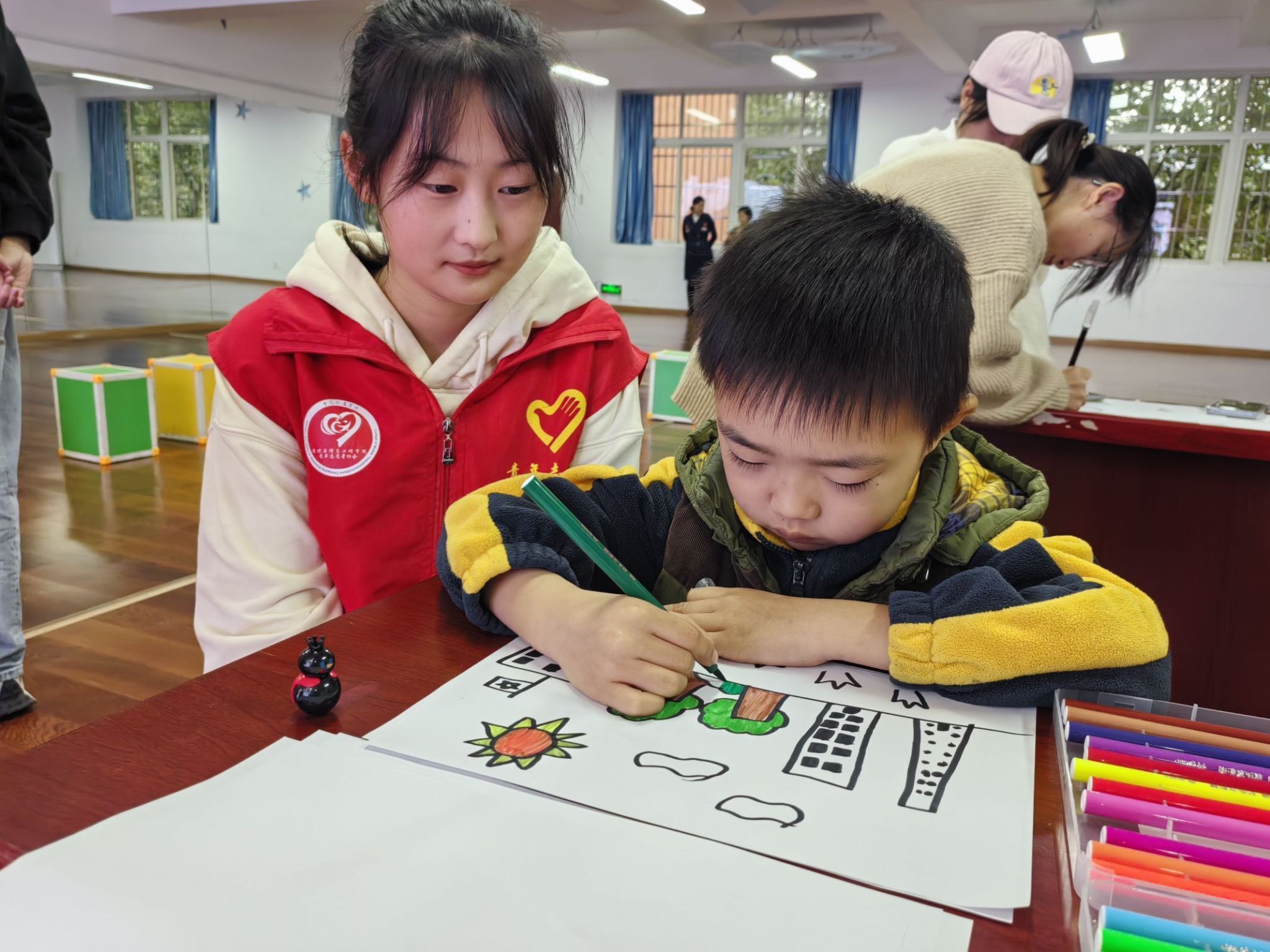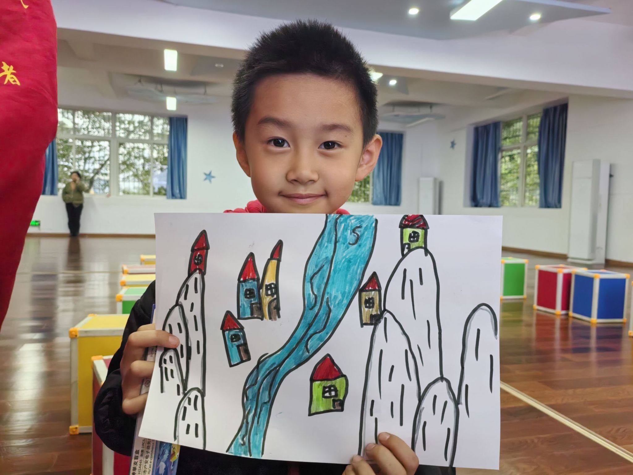 诗歌是古老历史留下的画卷,画出了一代代中国人的悲欢离合。是“故国长牵梦”的爱国情,是“野花开蒺藜”的坚韧不屈,通过主持人对《綦江道中》的解读,相信孩子们不仅了解到明代优秀诗人江源,更感悟到綦江厚重的历史文化。而本次的主题活动中,孩子们在主持人的带领下朗读郑珍的《綦江》——“地仍綦市旧,城郭大如园”。朗读结束后,支队人员为小朋友分发纸笔,让小朋友写下或者绘画出心中綦江的样子并进行分享。