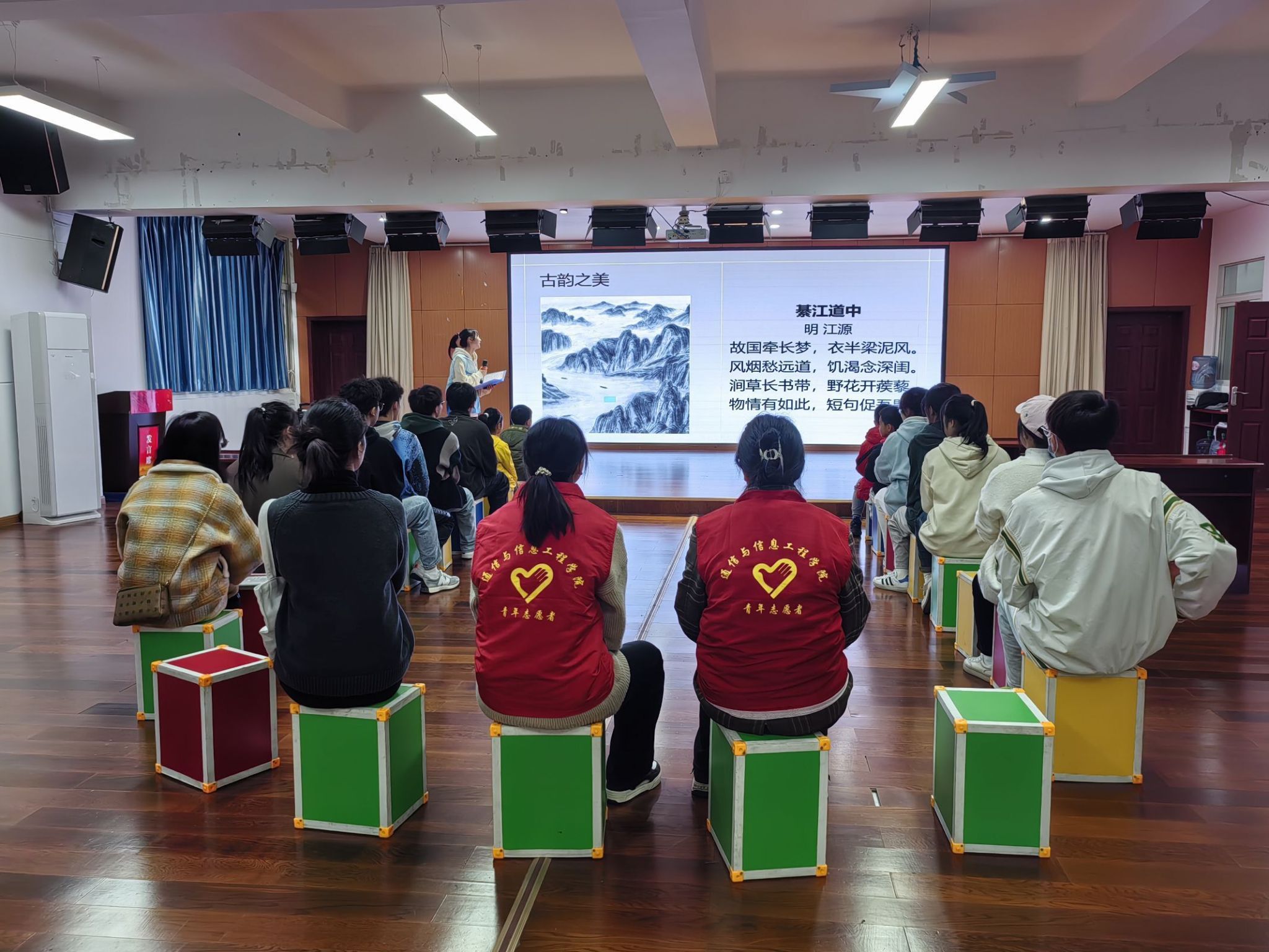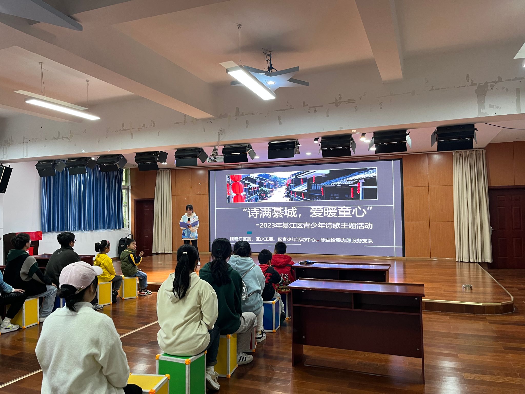 五千年文化,三千年诗韵。文人手中卷卷书册、笔下点点文墨,胸中山川丘壑……这是独属于中国人的浪漫。中国是一个诗国,而诗歌更是当地传统文化的重要载体之以其独特的抒情方式,高度凝练的语句,集中地反映着社会生活。为了让孩子们了解和认识本地文化,帮助同学们更好地理解自己的文化背景,培养对本地文化的认知和认同感。为此11月18日下午16点,“除尘拾墨”校园图书馆志愿服务专项支队在綦江区青少年活动中心开展“诗满綦城,爱暖童心”诗歌主题活动。此次活动参与人数20余人,受益人数30余人。