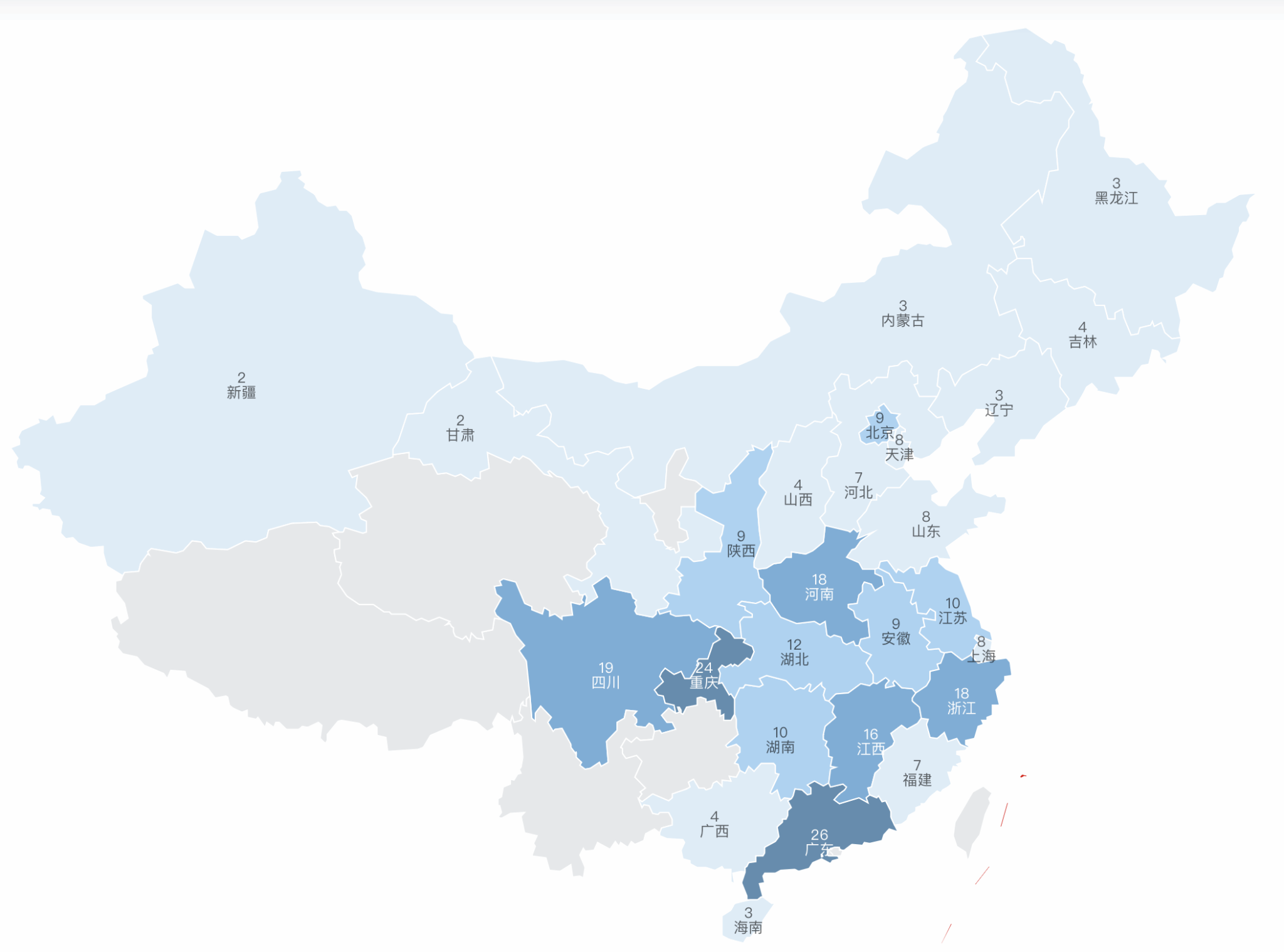 参赛高校分布于全国各地,辐射全国多个城市,其中华东地区共76所、西南地区共43所、华中地区共40所、华南地区共33所、华北地区共31所、西北地区共13所、东北地区共10所。